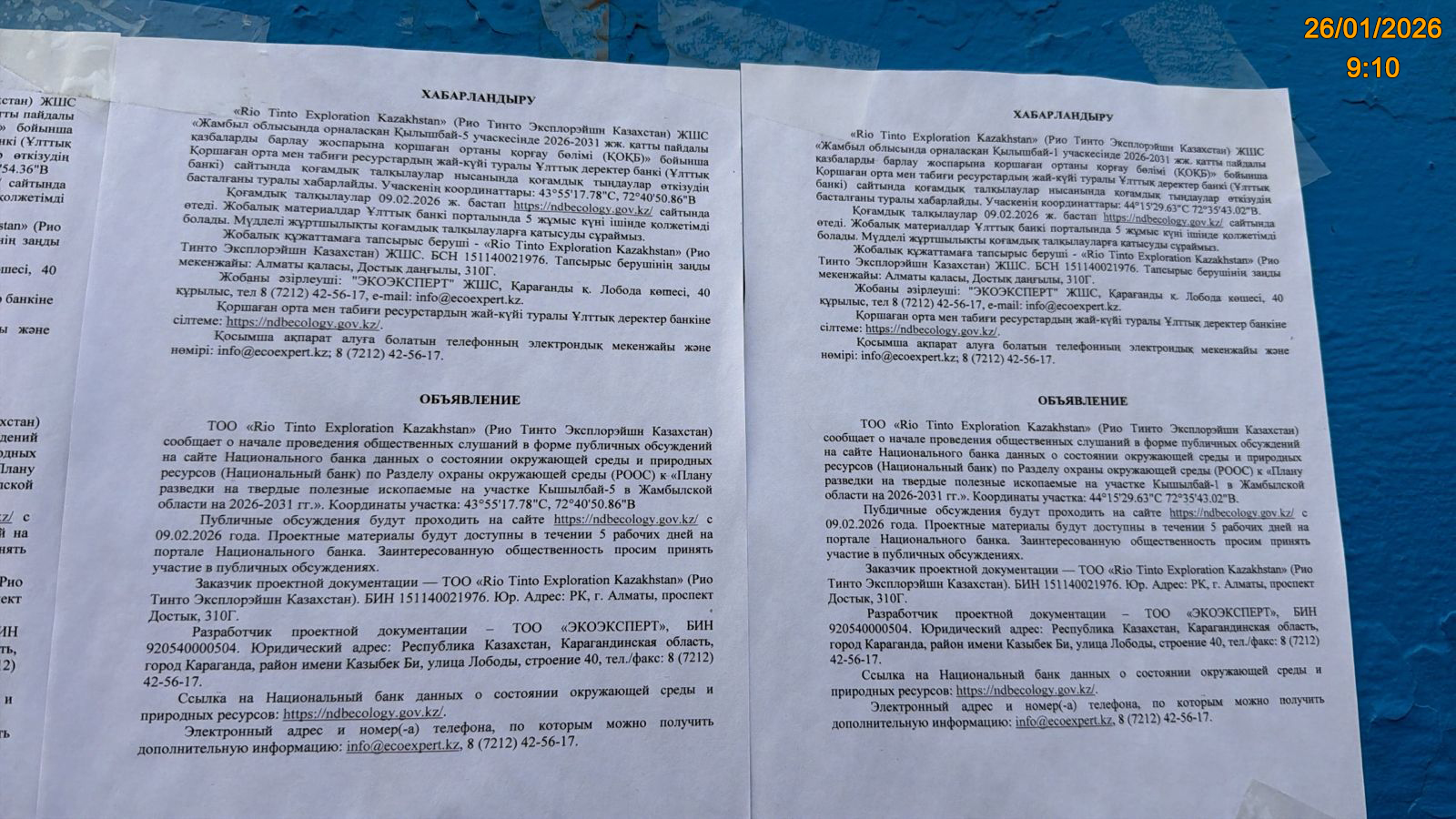 1.3. Контакты:ansarbek.kadraliyev@riotinto.com; ;