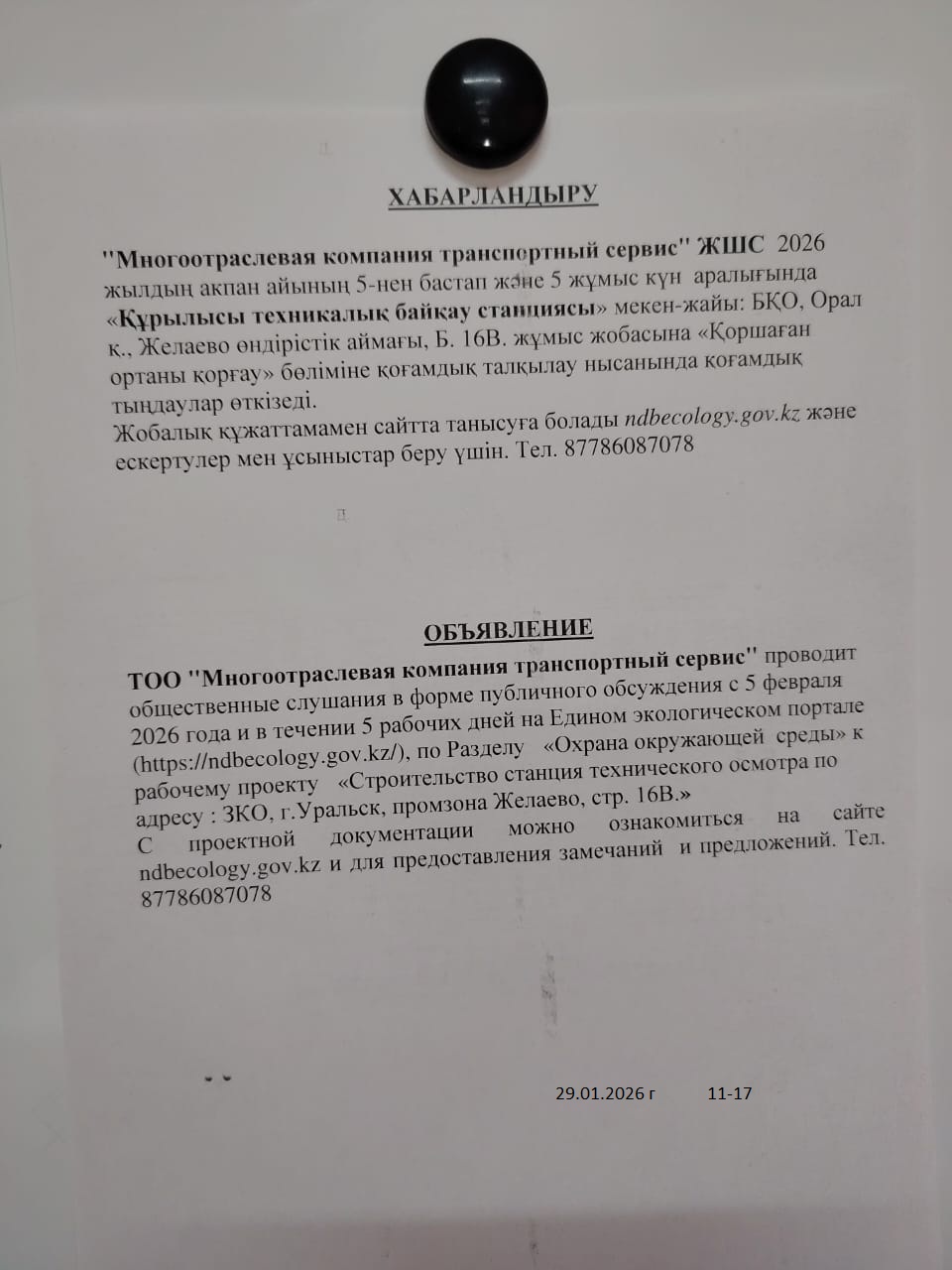 По проекту: «Строительство станция технического осмотра по адресу:ЗКО, г.Уральск, промзона Желаево, стр.16В»