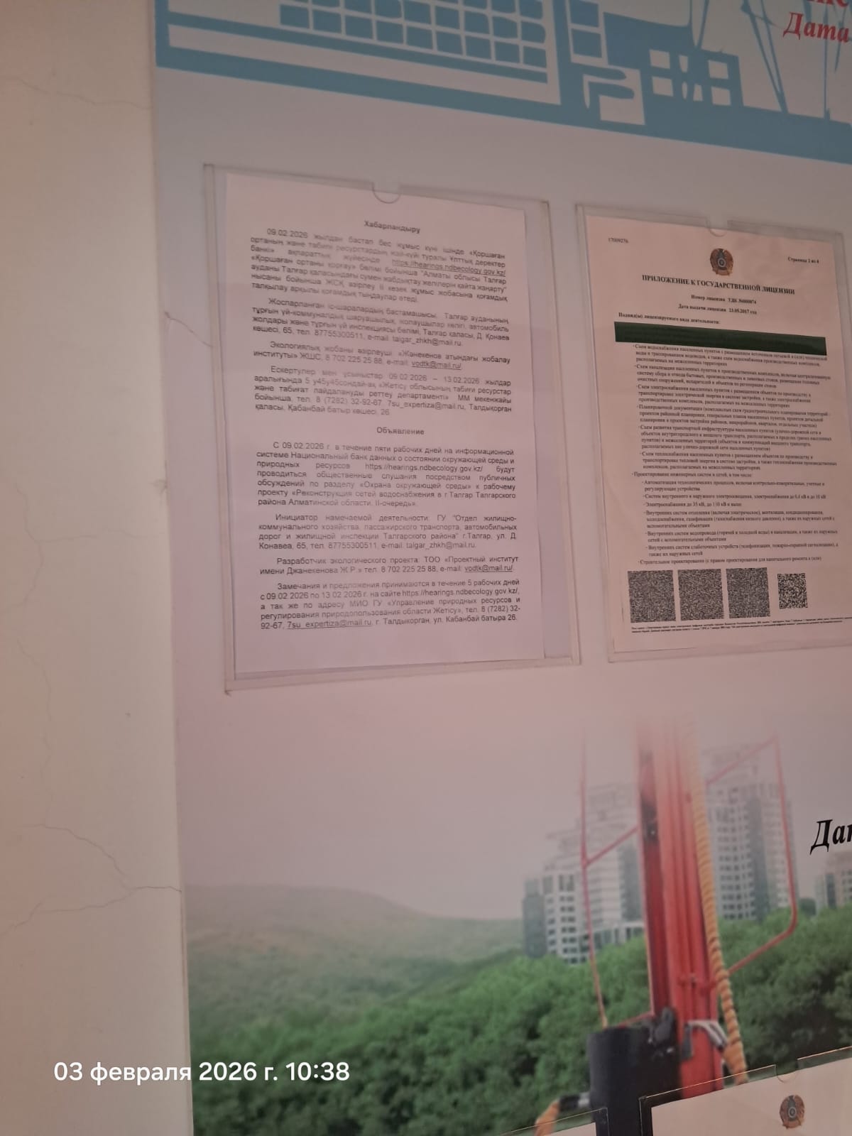 По проекту: «Реконструкция сетей водоснабжения в г.Талгар Талгарского района Алматинской области. II-очередь»