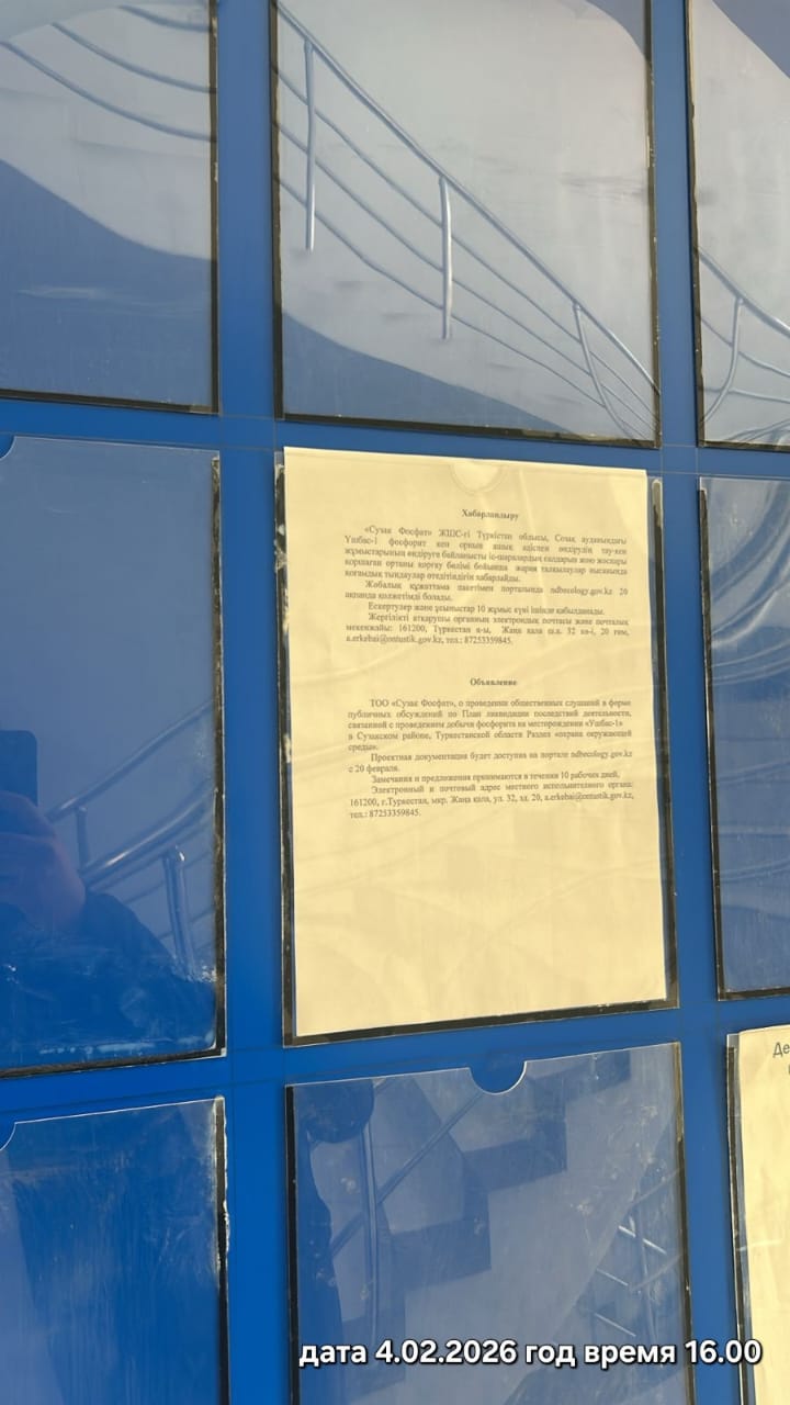 1. Инициатор: Товарищество с ограниченной ответственностью ""Сузак Фосфат""