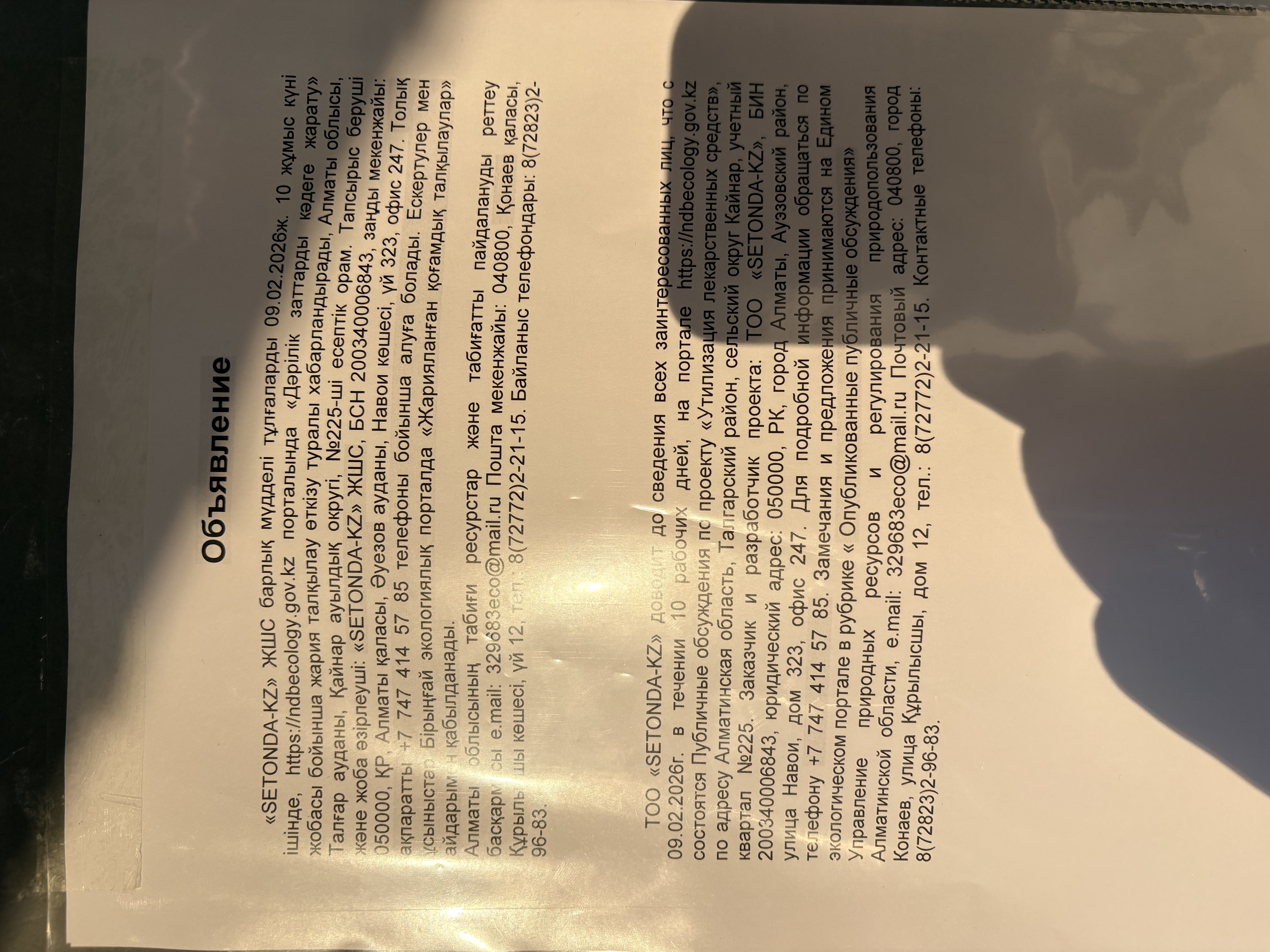 1. Инициатор: Товарищество с ограниченной ответственностью ""SETONDA - KZ"" (СЕТОНДА-КЗ)
