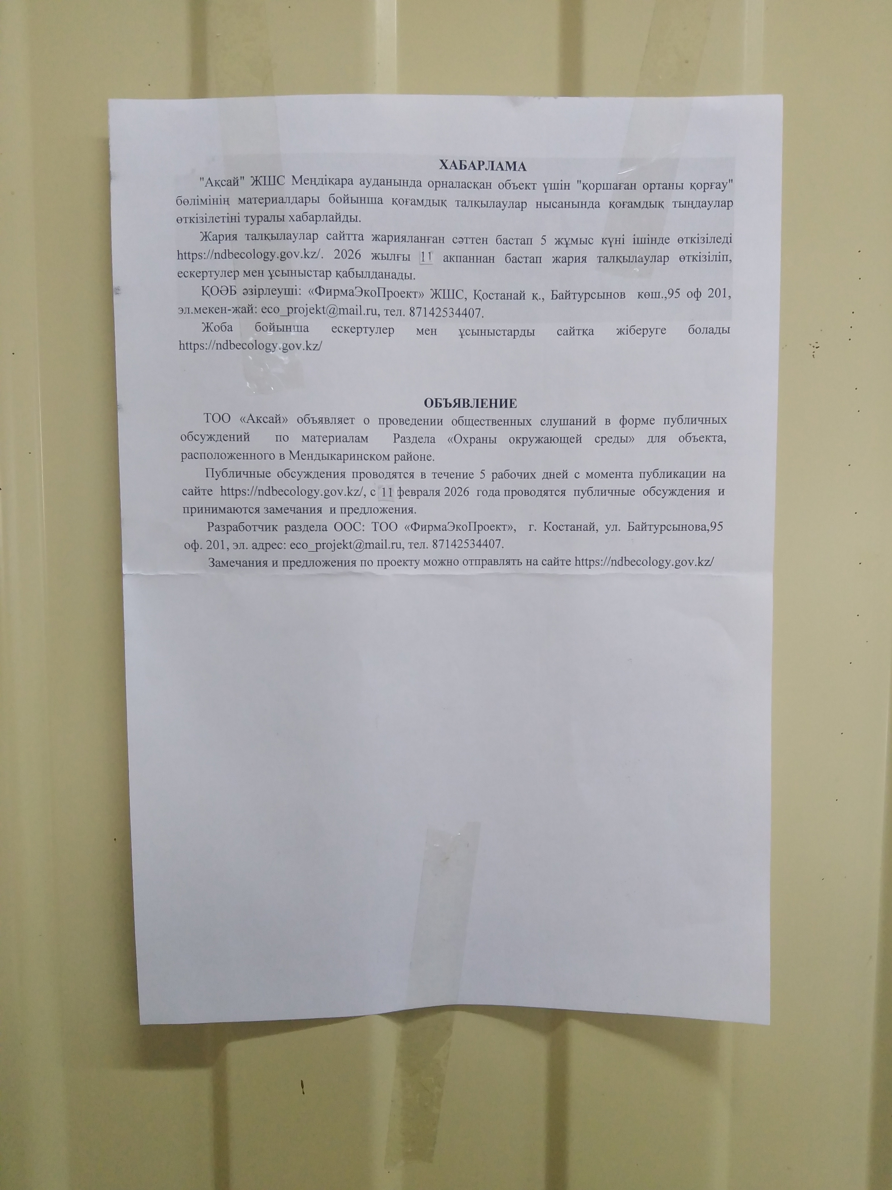 1. Инициатор: Товарищество с ограниченной ответственностью ""АКСАЙ""