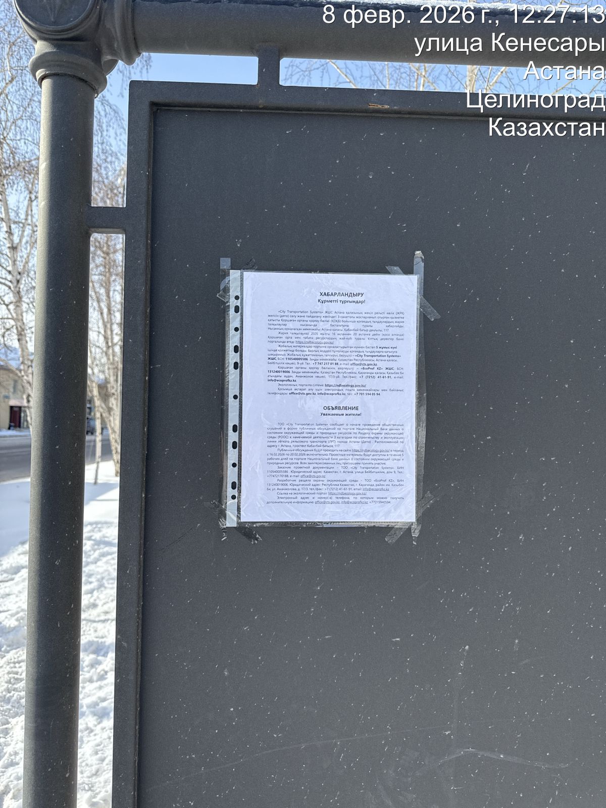 столицы, в адрес которого направлены материалы, выносимые на общественные слушания: