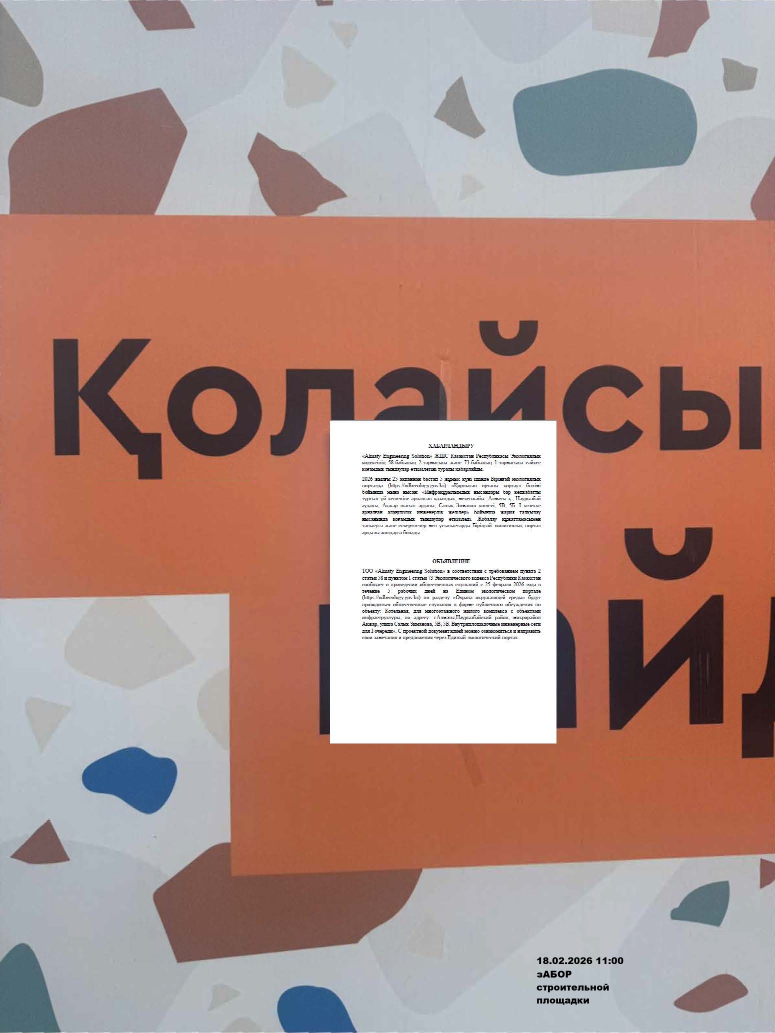 По проекту: РАЗДЕЛ ОХРАНА ОКРУЖАЮЩЕЙ СРЕДЫ «Строительство многоэтажного жилого комплекса с объектами инфраструктуры, по адресу: г.Алматы, Наурызбайский район, микрорайон Акжар, улица Салык Зиманова, 5В, 5Б. Внутриплощадочные инженерные сети для I очереди». Блочно-модульные котельные. Строительство и эксплуатация