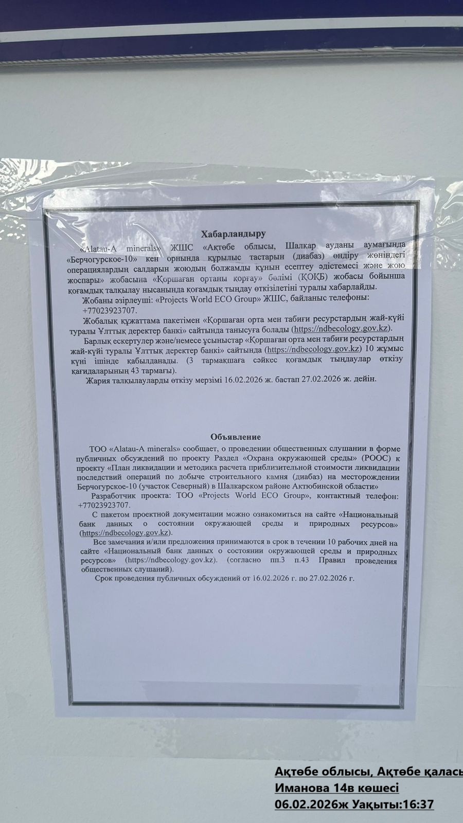 2. Период проведения общественных слушаний: 16.02.2026 - 27.02.2026