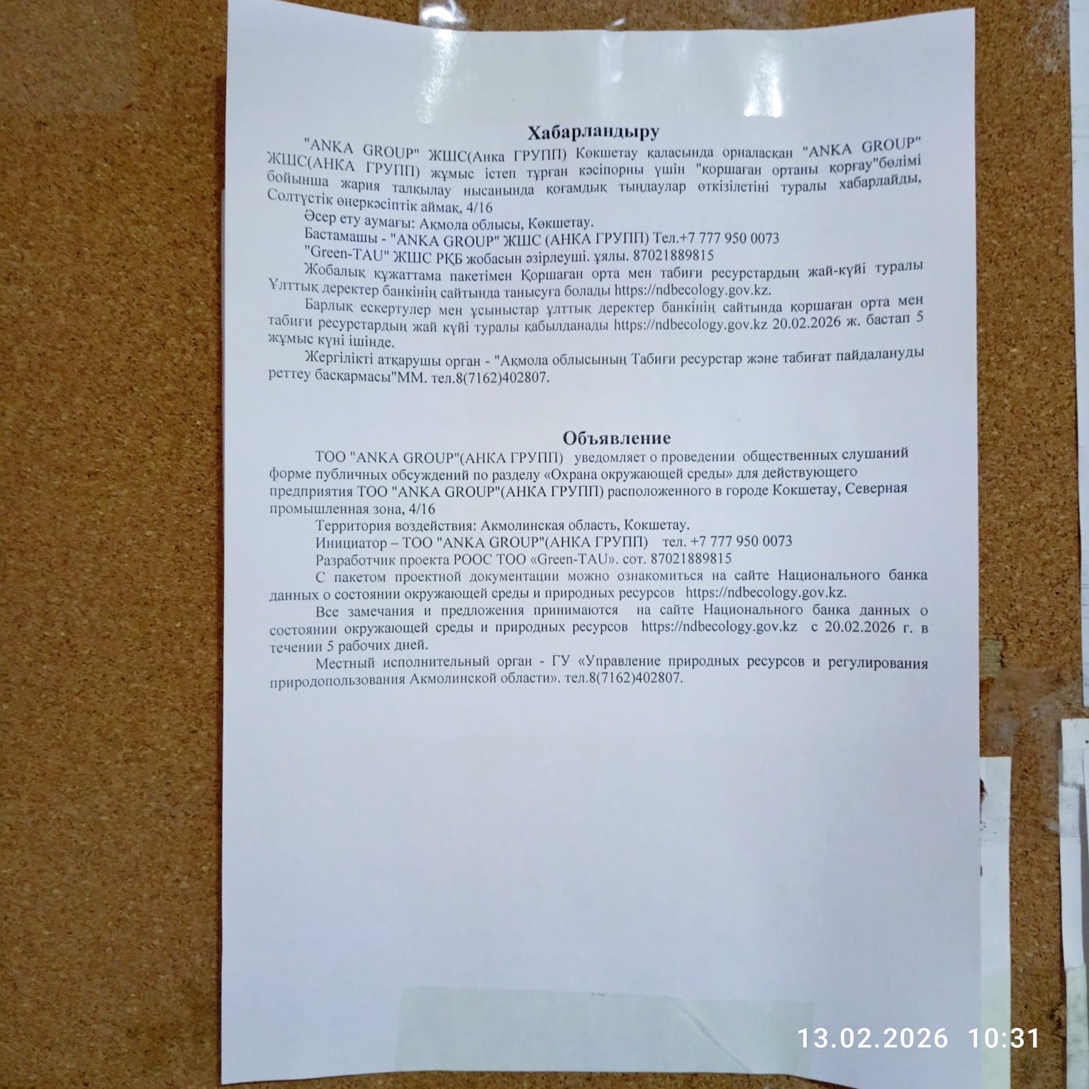 4.2. Дополнительная информация о административно-территориальных единиц: Перечень административно-территориальных единиц на территорию которых может быть оказано воздействие и на территории которых будут проведены общественные слушания (если общественные слушания по одному и тому же предмету слушаний проводятся более чем в одной административно-территориальной единице): Акмолинская область, г. Кокшетау.