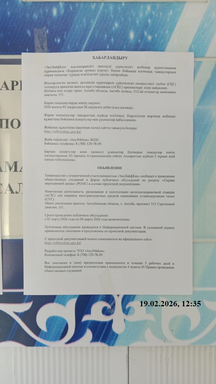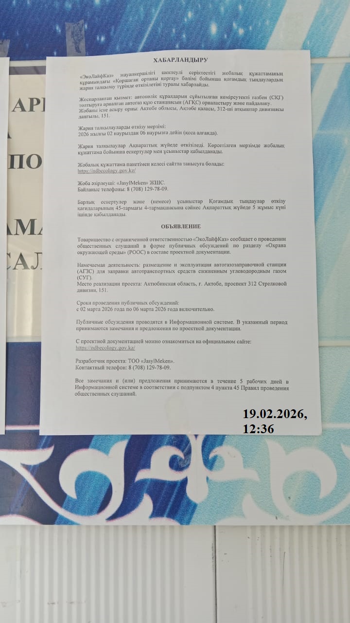 4.2. Дополнительная информация о административно-территориальных единиц: Актюбинская область, г. Актобе, проспект 312 Стрелковой дивизии, 151.