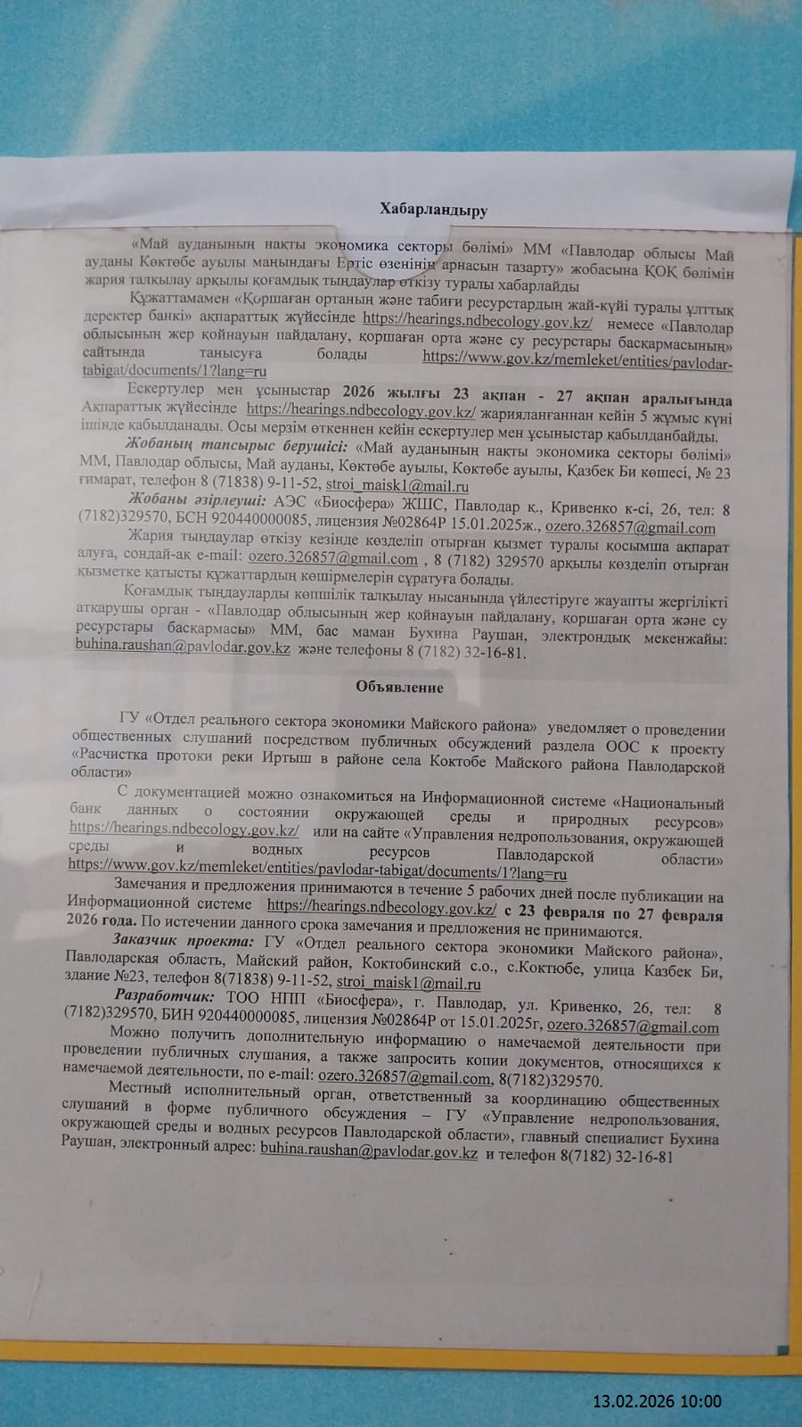 2. Период проведения общественных слушаний: 23.02.2026 - 27.02.2026