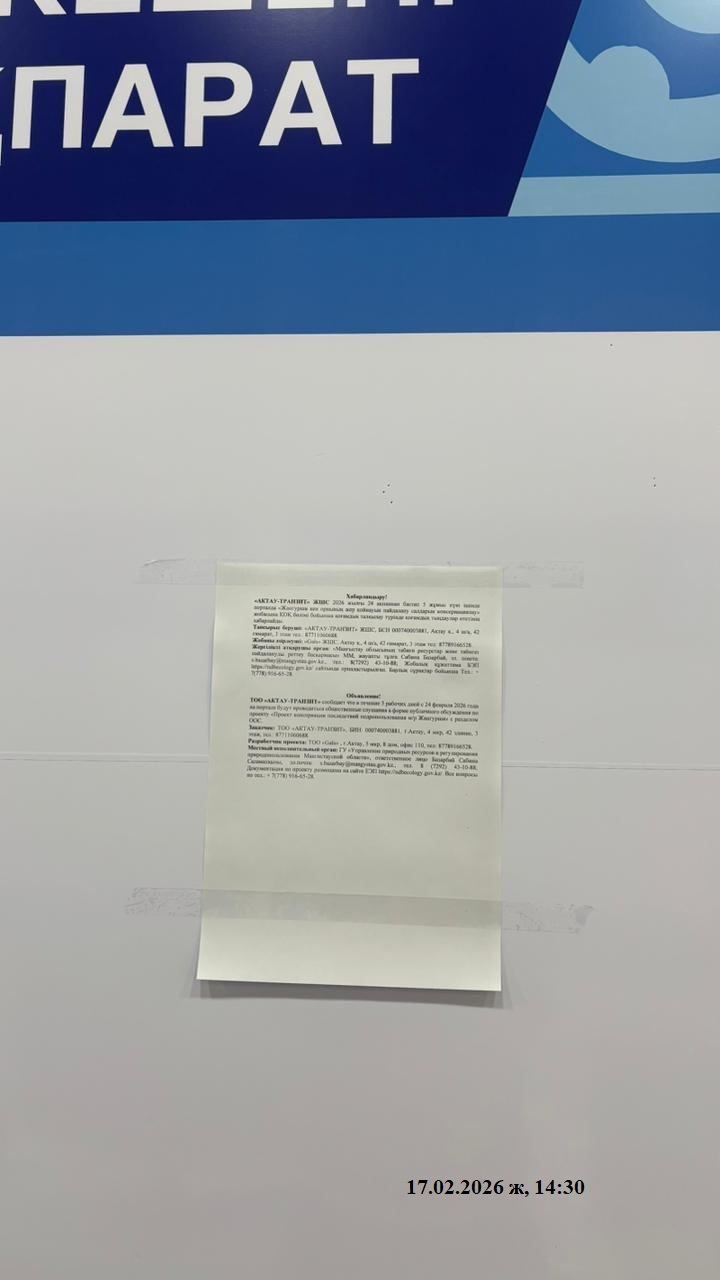 1. Инициатор: Товарищество с ограниченной ответственностью ""Актау-Транзит""