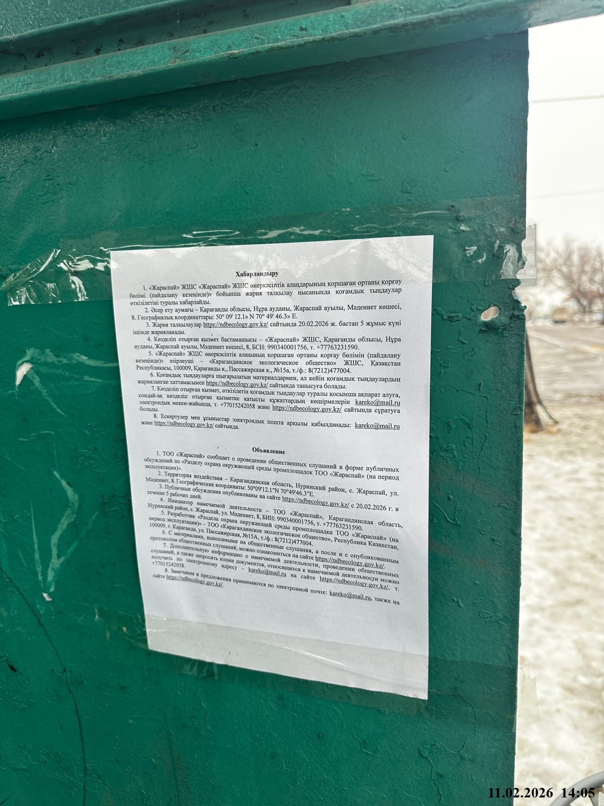 По проекту: Раздел охраны окружающей среды промплощадок ТОО "Жараспай" (на период эксплуатации)