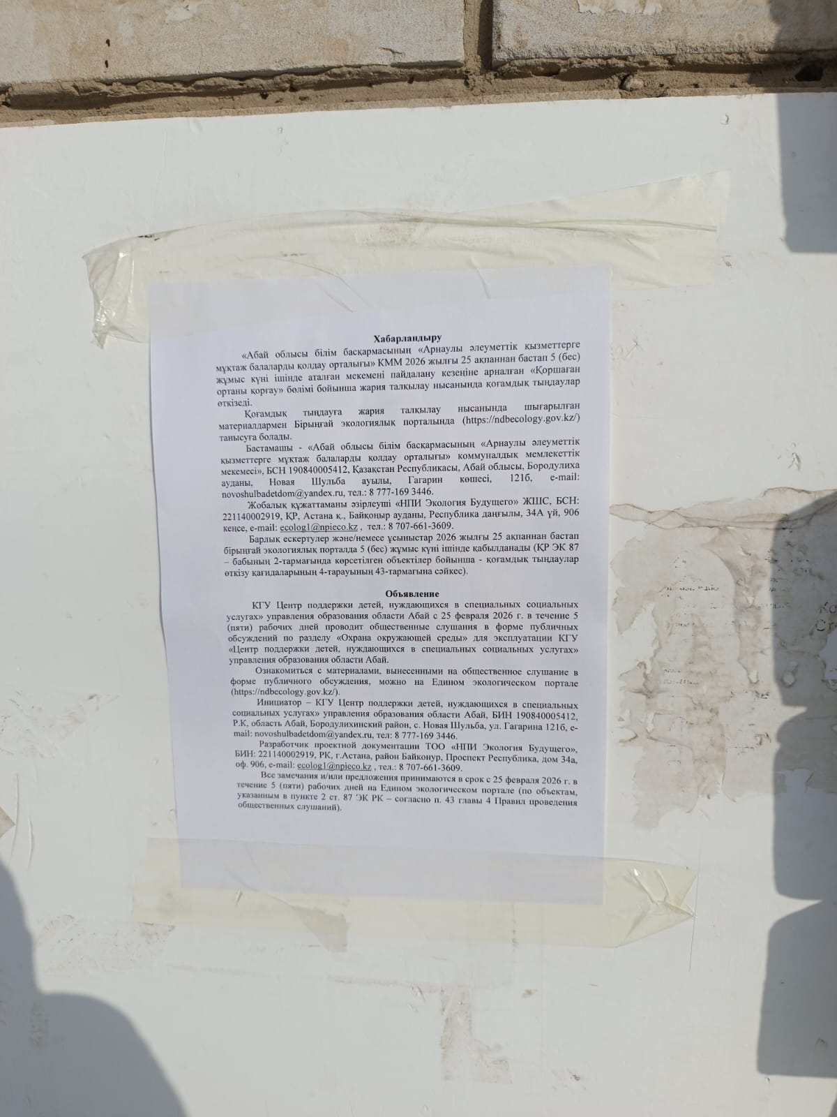 По проекту: раздел «Охрана окружающей среды» для КГУ «Центр поддержки детей, нуждающихся в специальных социальных услугах» УО области Абай