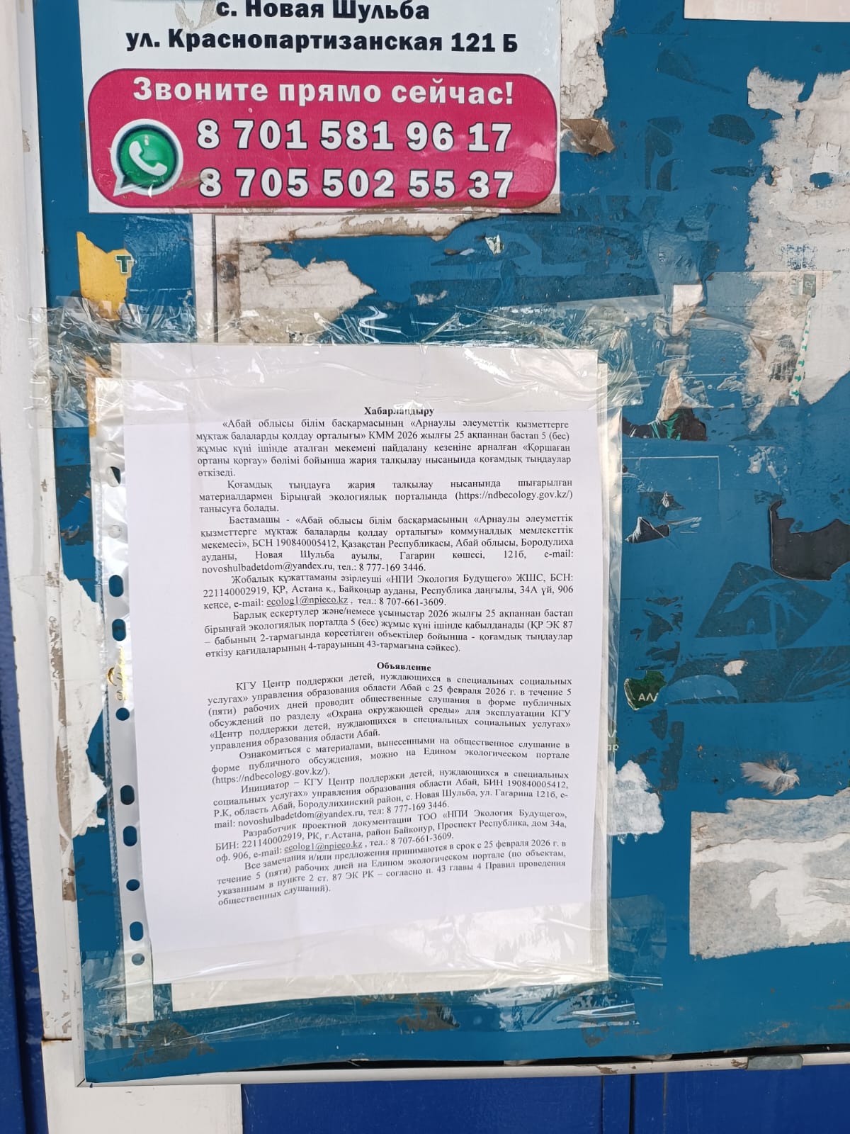 4.2. Дополнительная информация о административно-территориальных единиц: Объект расположен в Бородулихинском районе области Абай, в селе Новая Шульба, что обеспечивает доступность социальных услуг для населения сельских и близлежащих территорий. Ближайшие жилые зоны находятся следующим образом: с севера – на расстоянии 171 м, с востока – 245 м, с юга – 578 м, с запада – 80 м.
