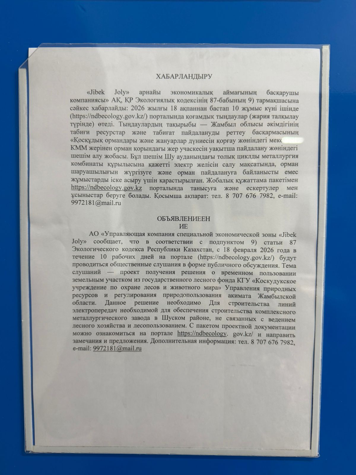 1. Инициатор: ""Jibek Joly"" арнайы экономикалық аймағының басқарушы компаниясы"" акционерлік қоғамы