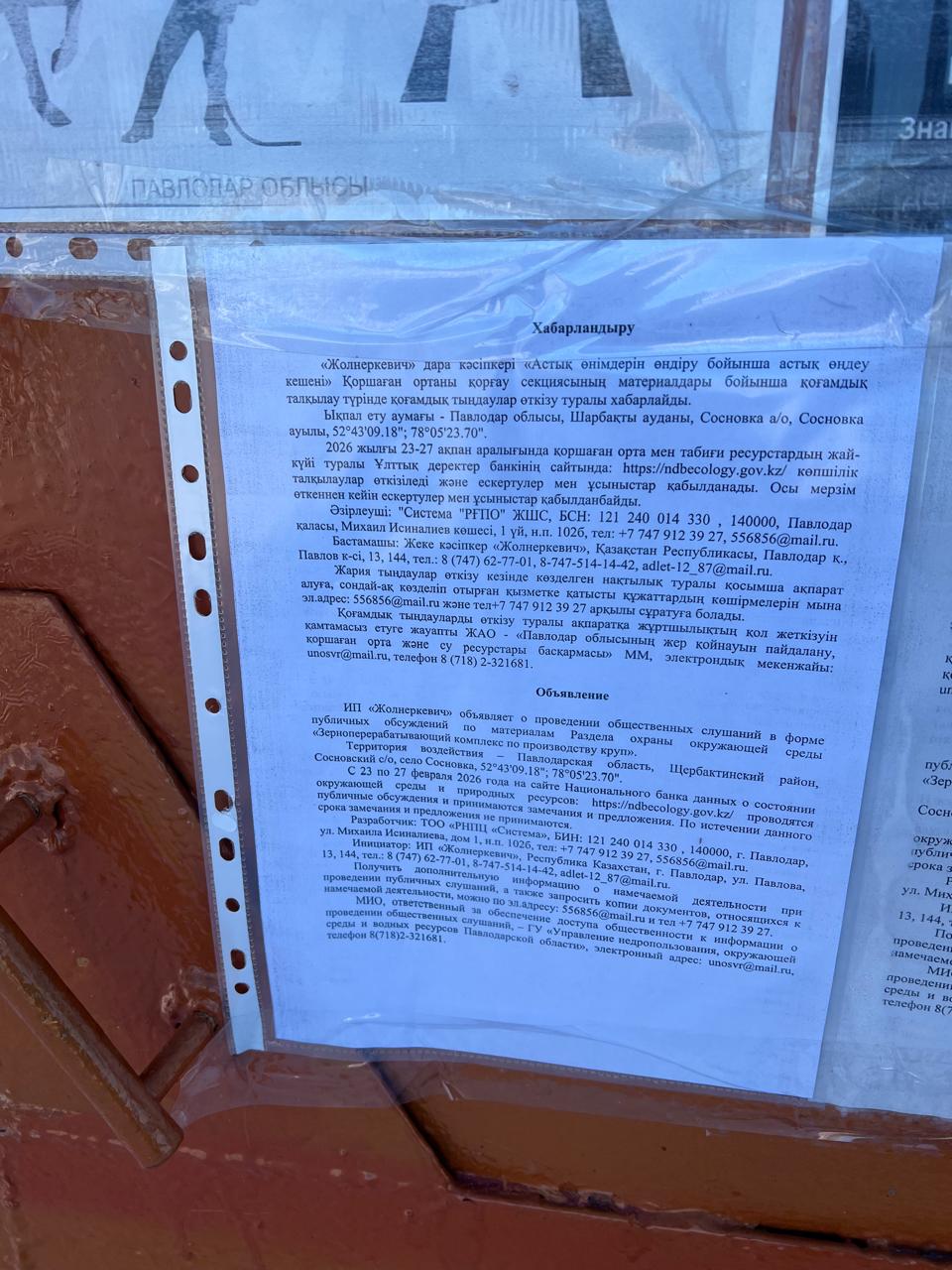 | 1 | Павлодарская область, Щербактинский район, Сосновский с.о. |