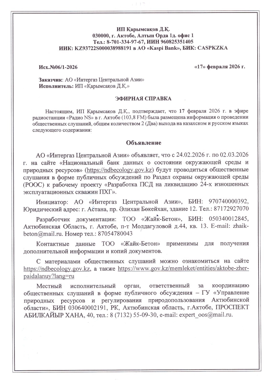 1. Инициатор: Акционерное общество ""Интергаз Центральная Азия""