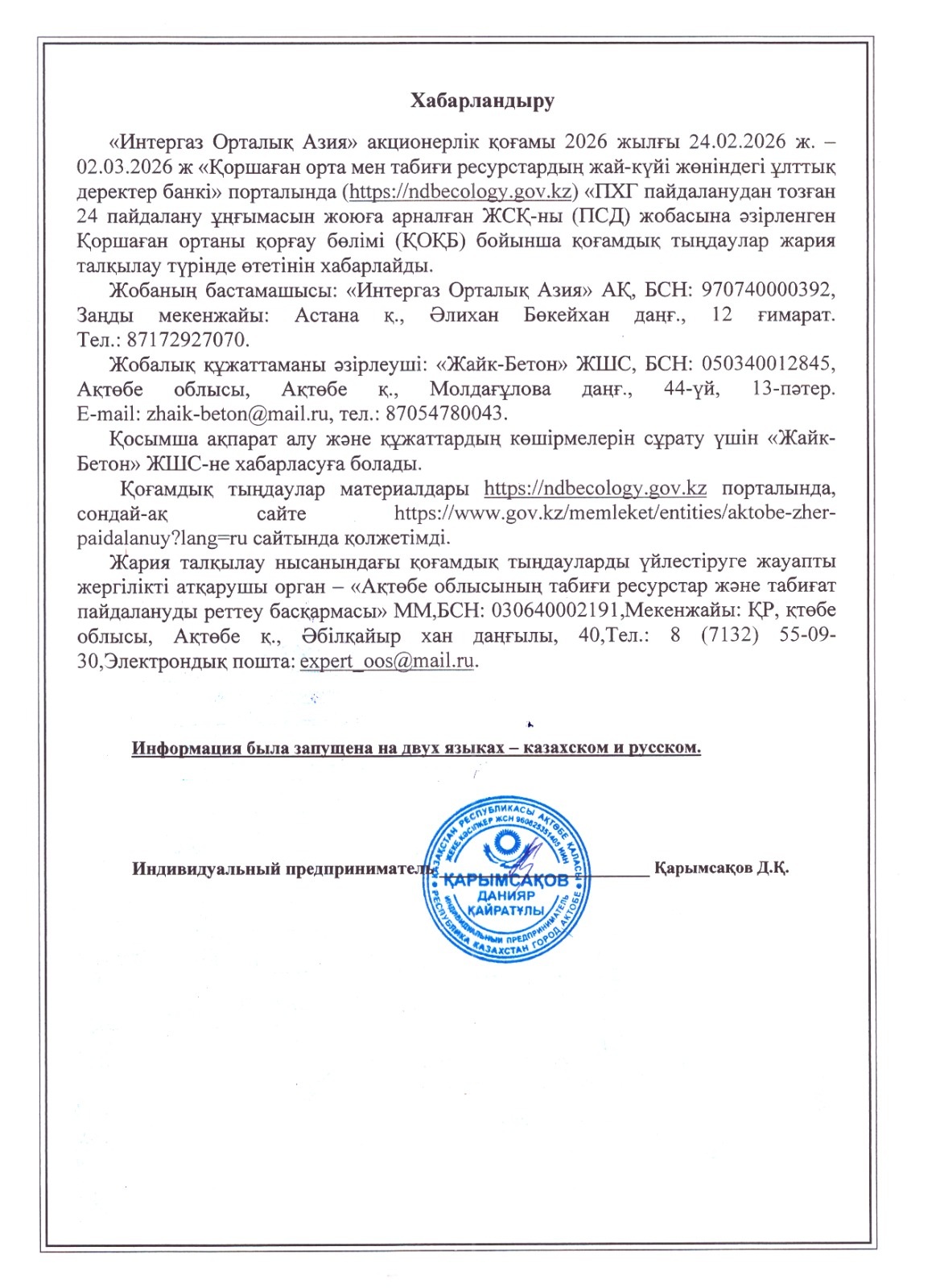 2. Период проведения общественных слушаний: 24.02.2026 - 02.03.2026