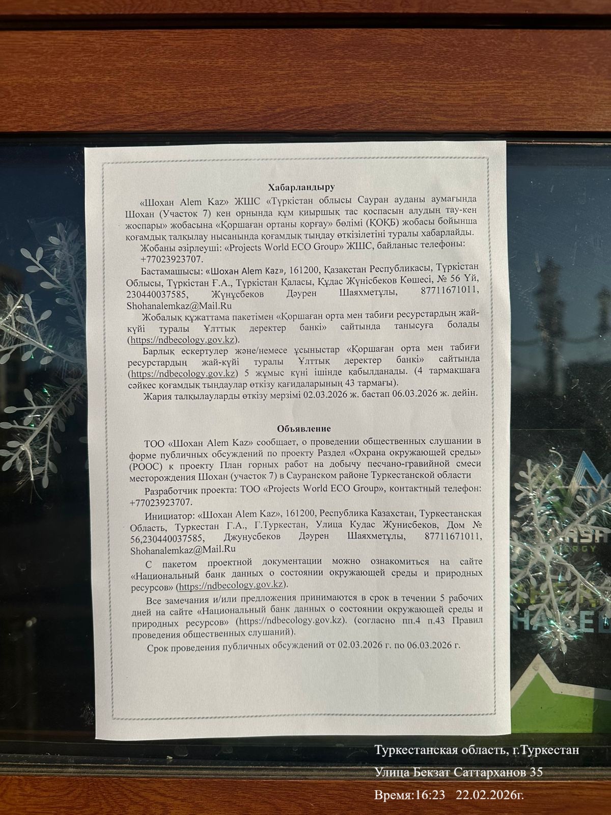 1.3. Контакты:shohanalemkaz@mail.ru; ;