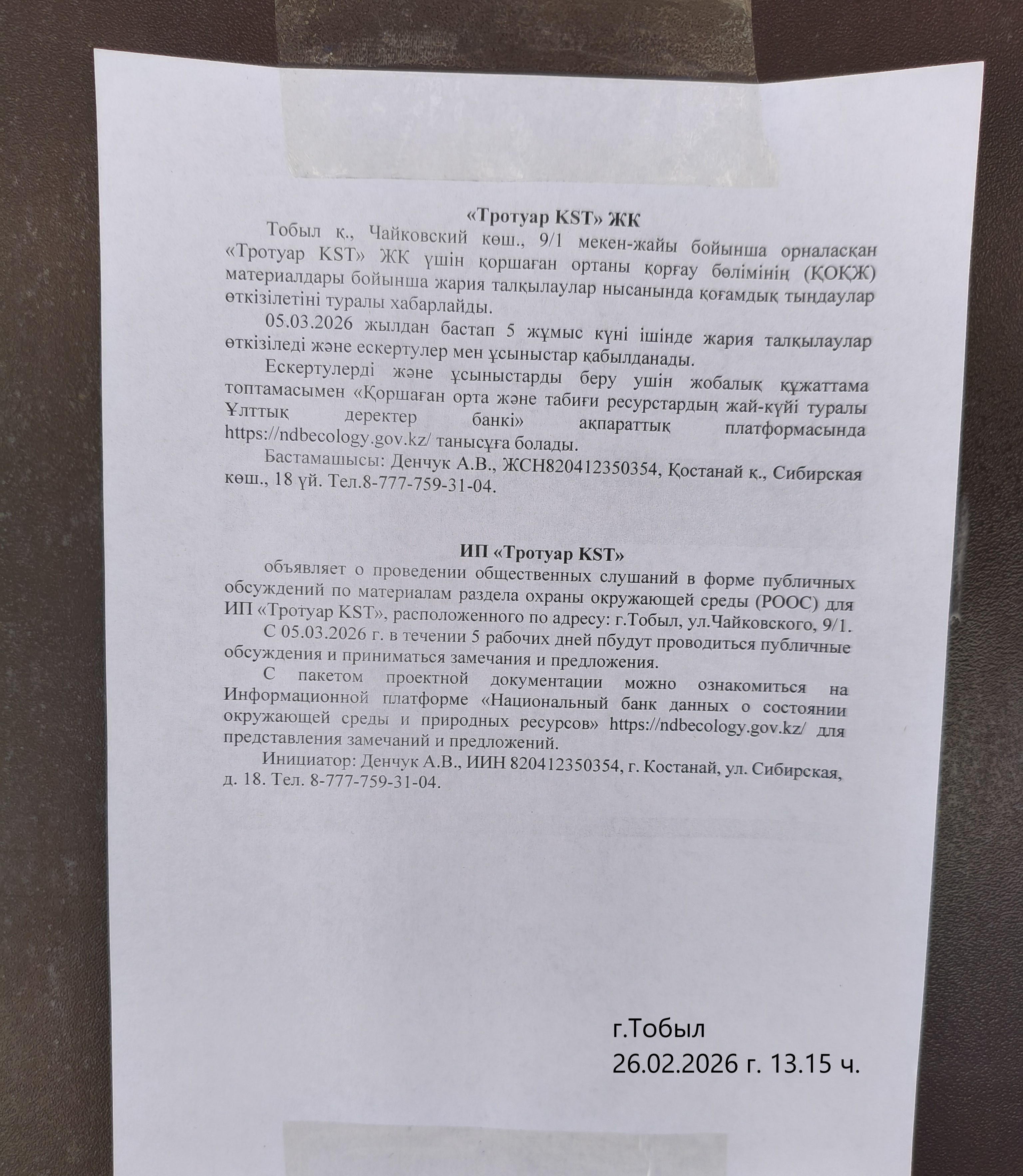 2. Период проведения общественных слушаний: 05.03.2026 - 12.03.2026
