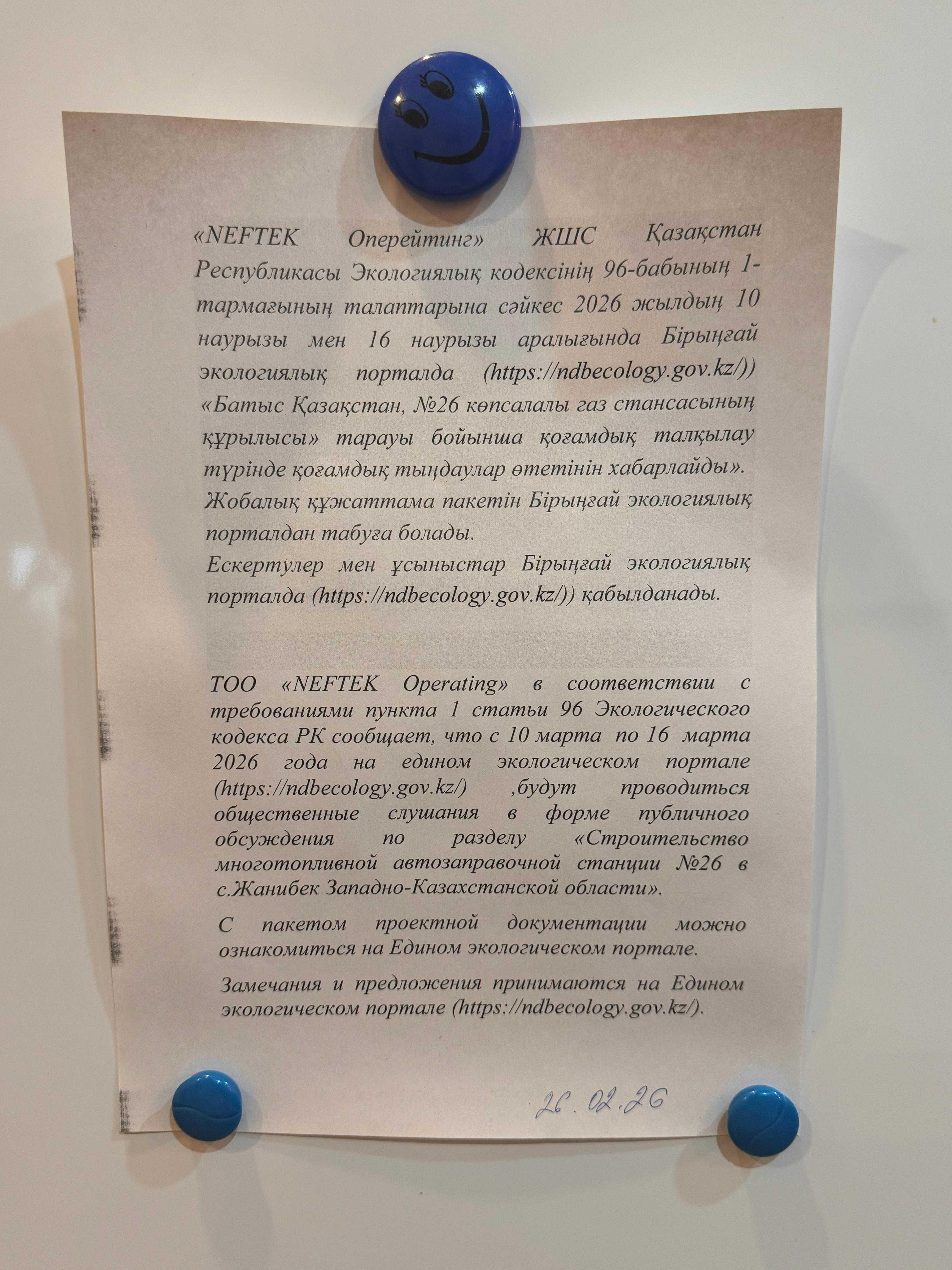 1.3. Контакты:a.muldasheva@neftek.kz; ;