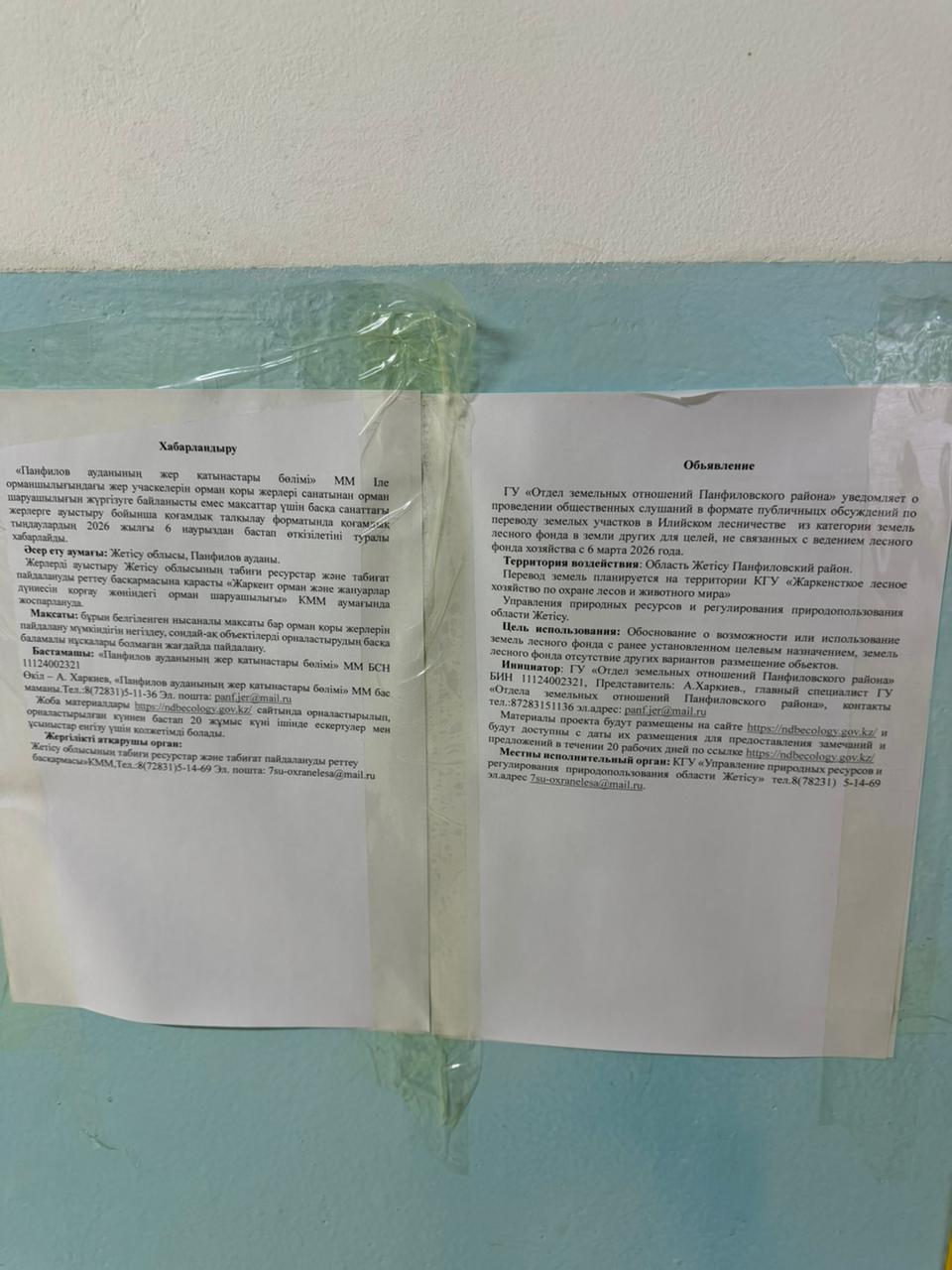 1. Инициатор: Государственное учреждение ""Отдел земельных отношений Панфиловского района""