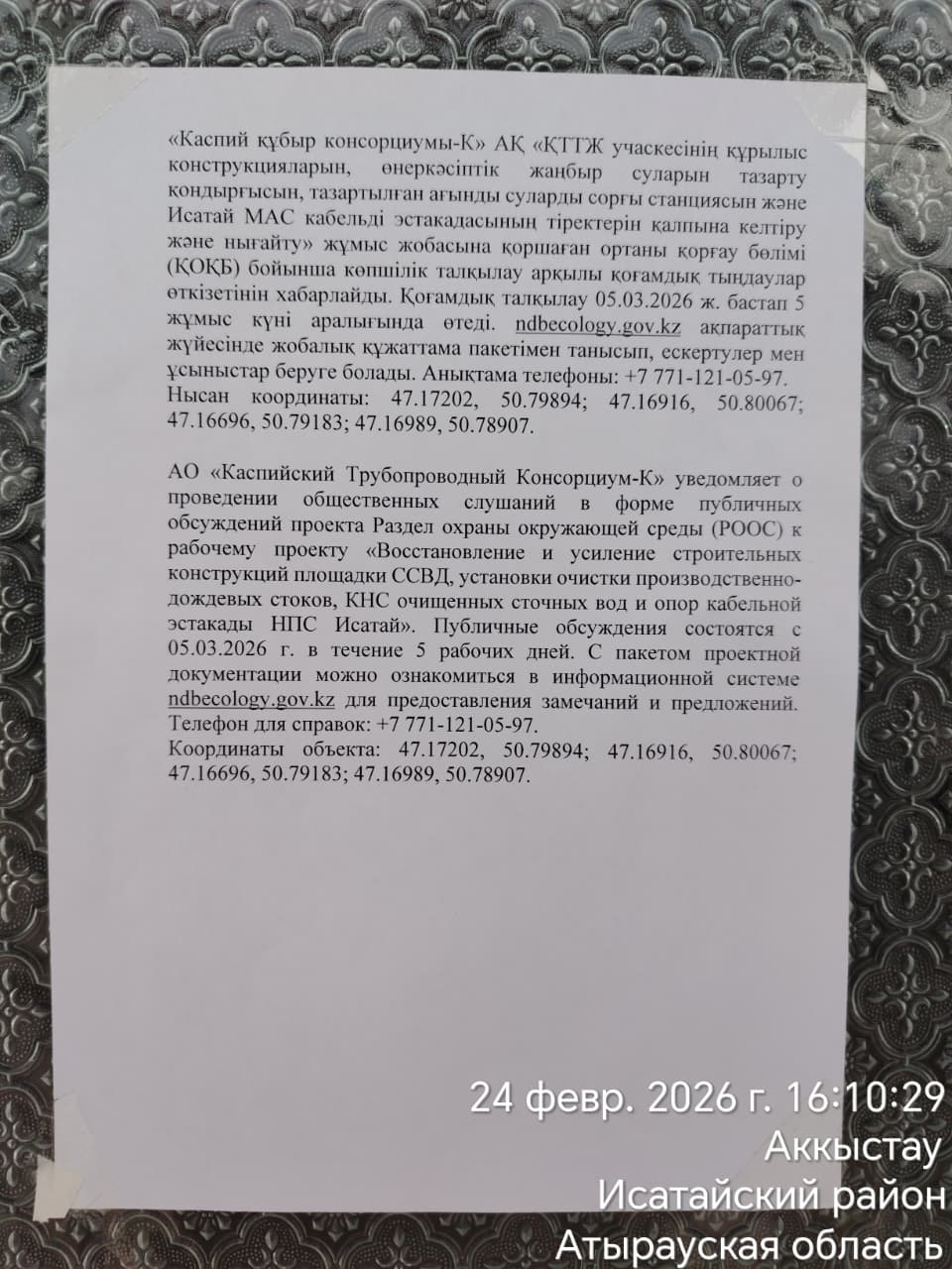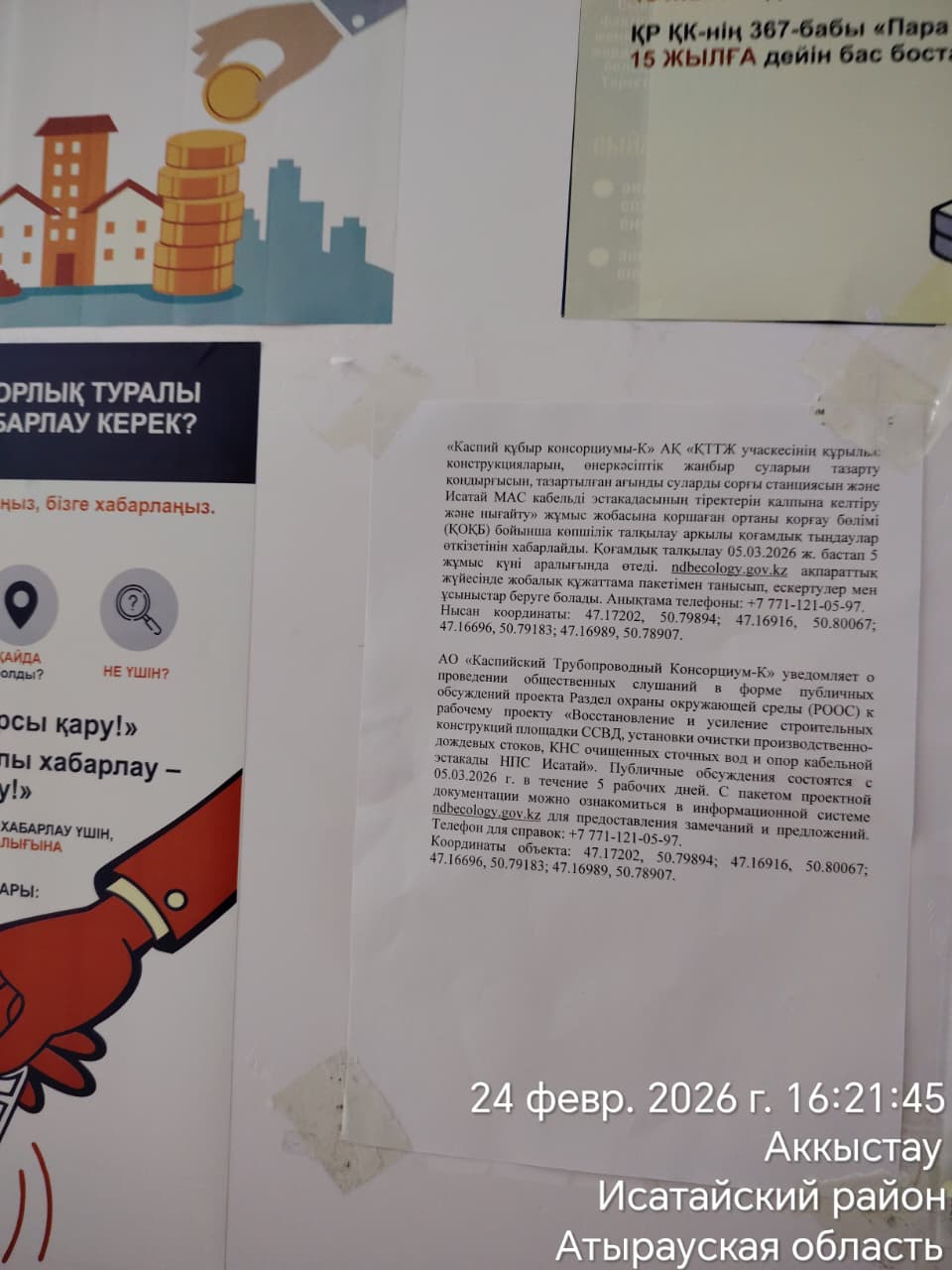 По проекту: Раздел охраны окружающей среды (РООС) к рабочему проекту «Восстановление и усиление строительных конструкций площадки ССВД, установки очистки производственно- дождевых стоков, КНС очищенных сточных вод и опор кабельной эстакады НПС Исатай»