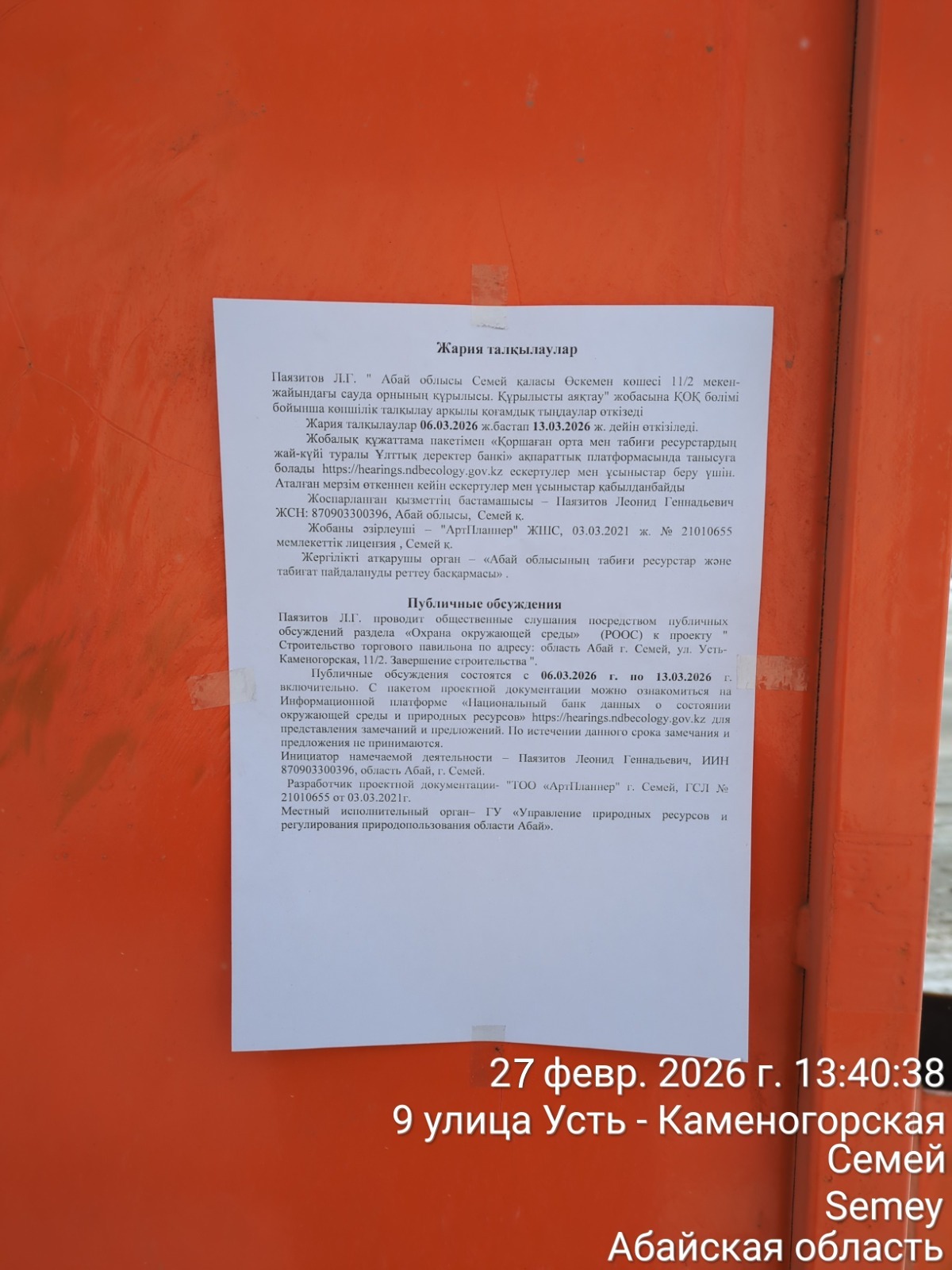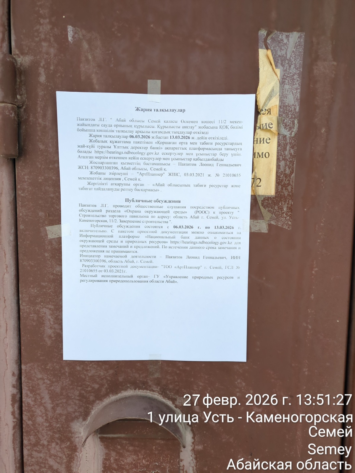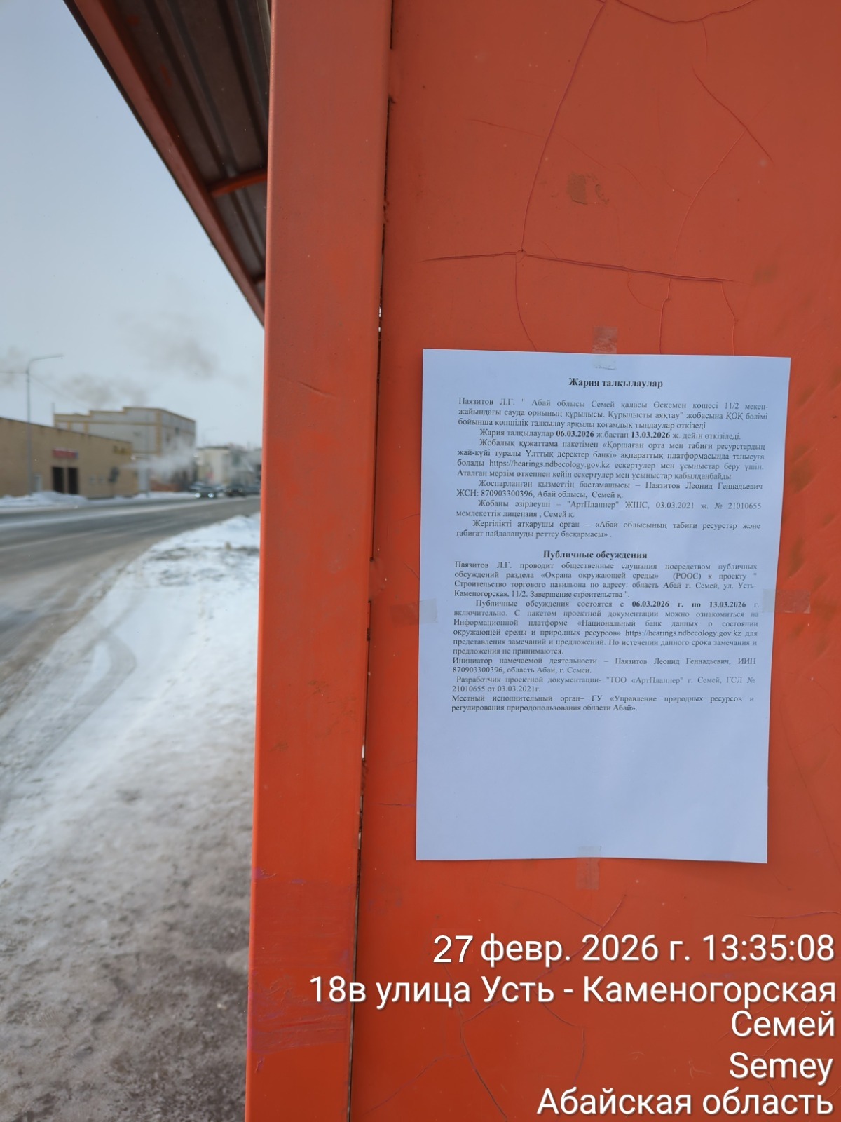 2. Период проведения общественных слушаний: 06/03/2026 - 13/03/2026
