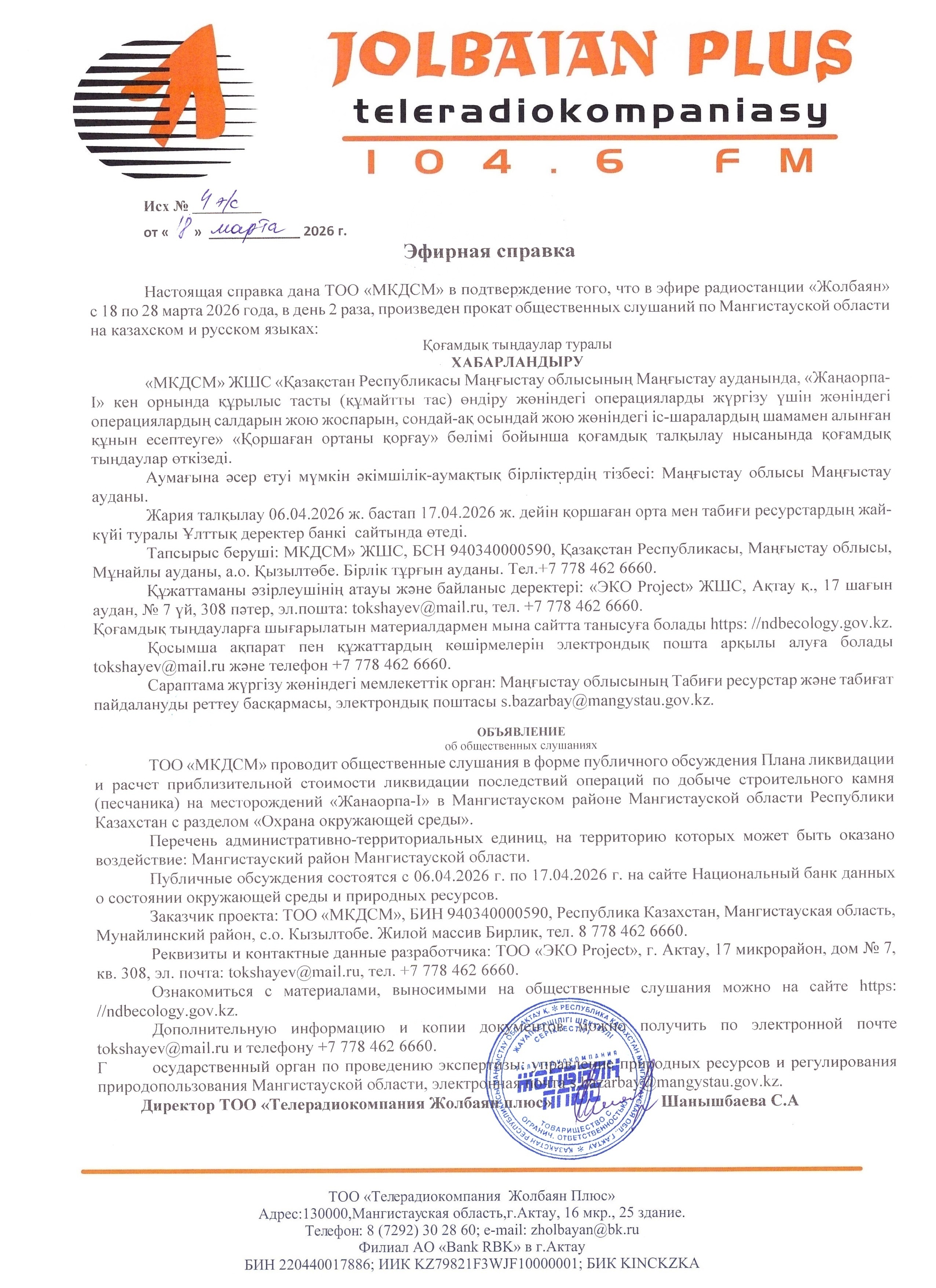 2. Период проведения общественных слушаний: 06.04.2026 - 17.04.2026