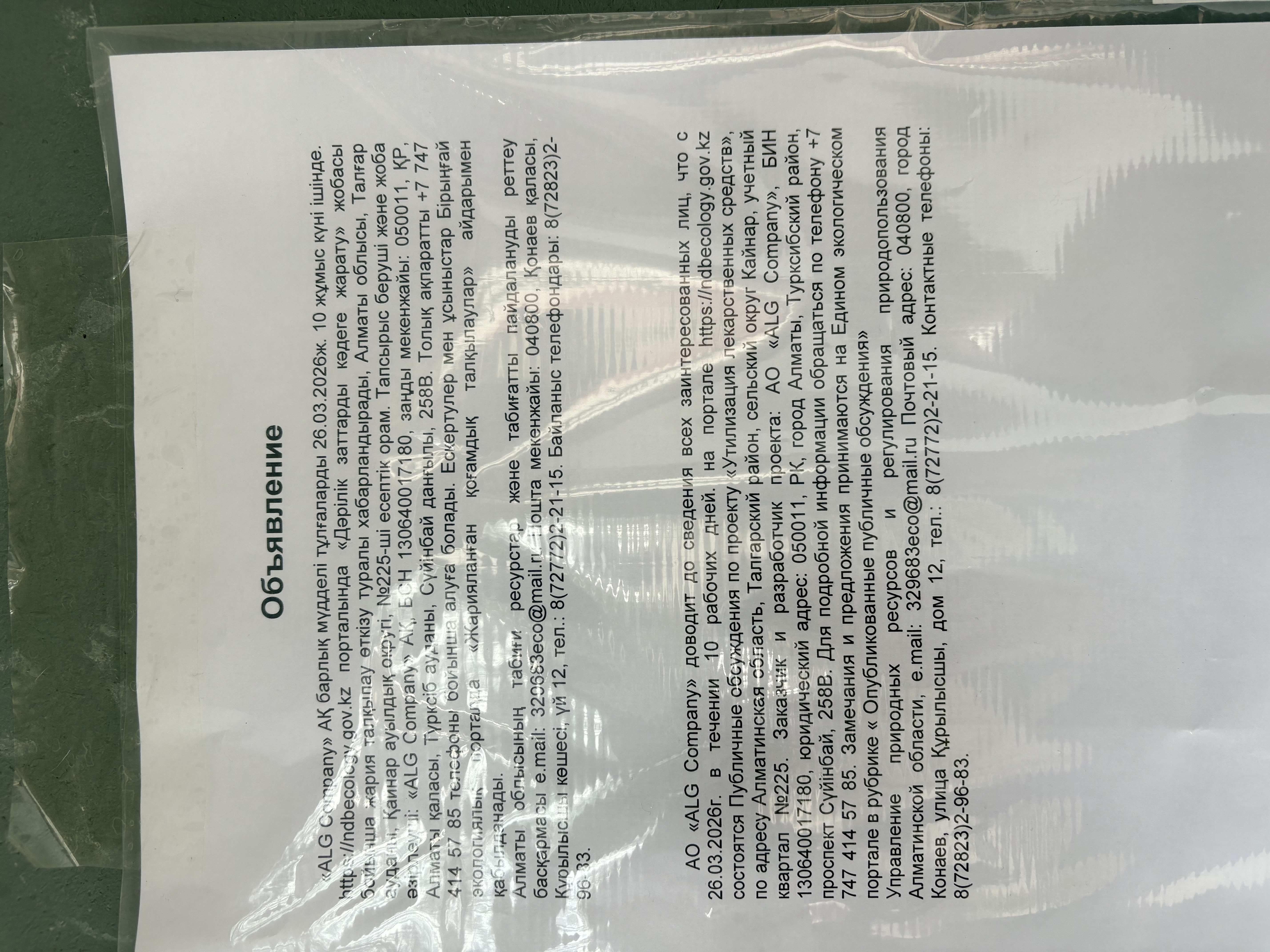 | 1 | Алматинская область, Талгарский район, Кайнарский с.о. |
