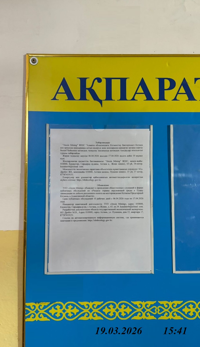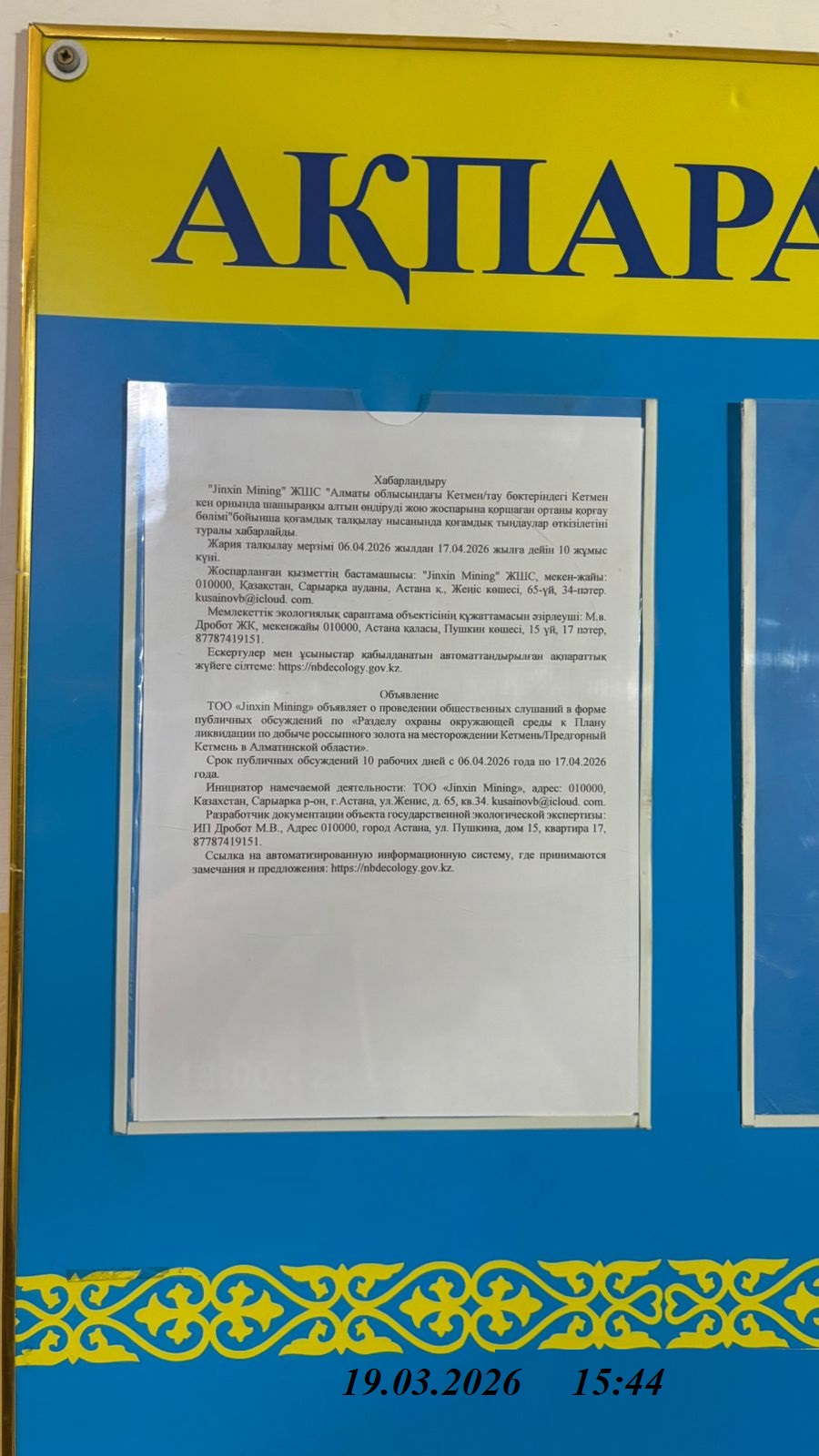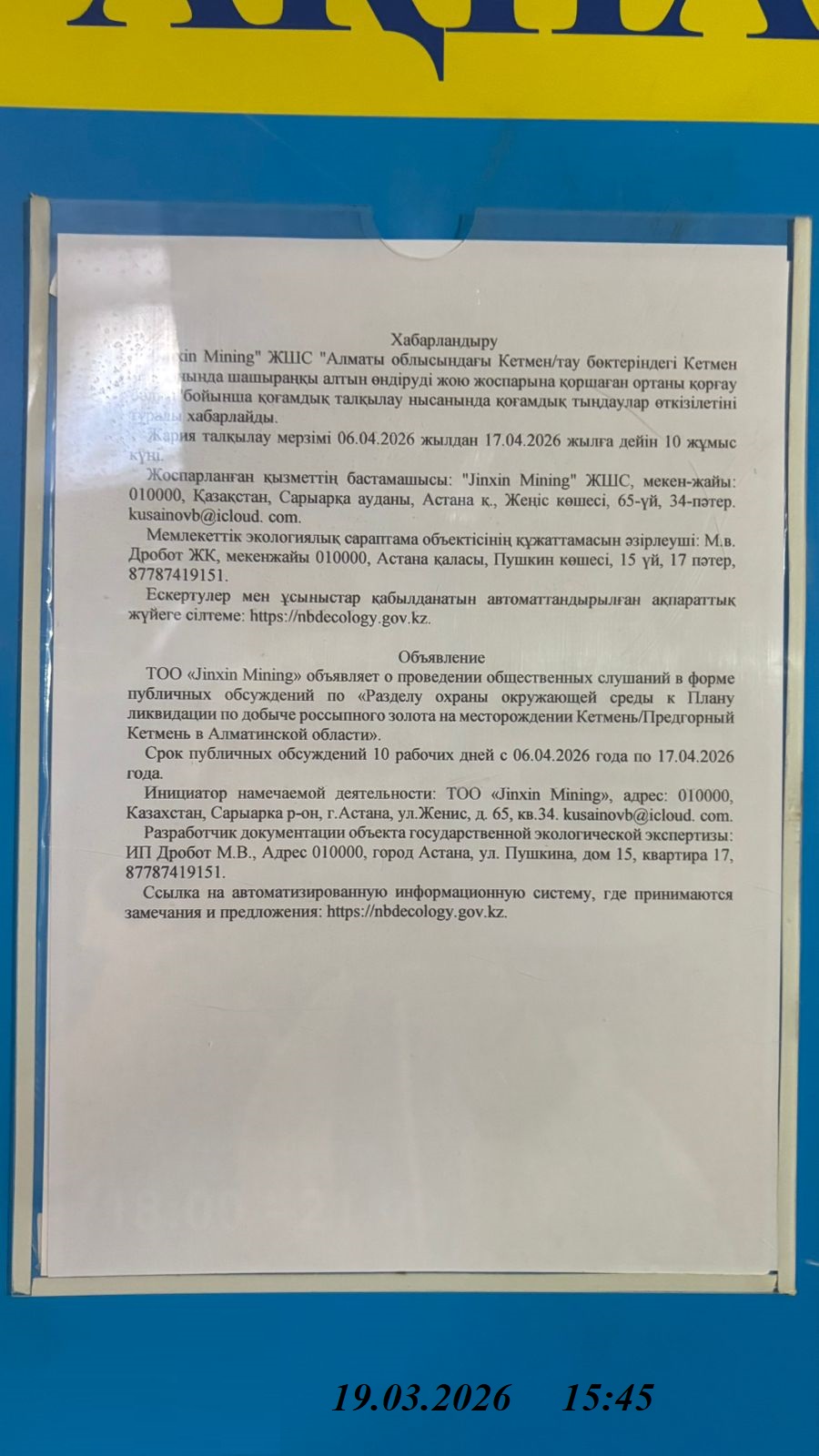1. Инициатор: Товарищество с ограниченной ответственностью ""Jinxin Mining""