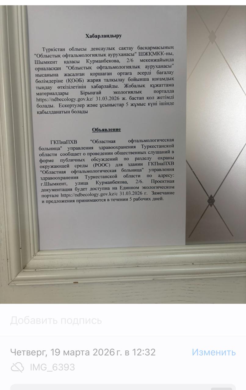 По проекту: ГКПнаПХВ "Областная офтальмологическая больница" управления здравоохранения Туркестанской области по адресу: г.Шымкент, улица Курманбекова, 2/6
