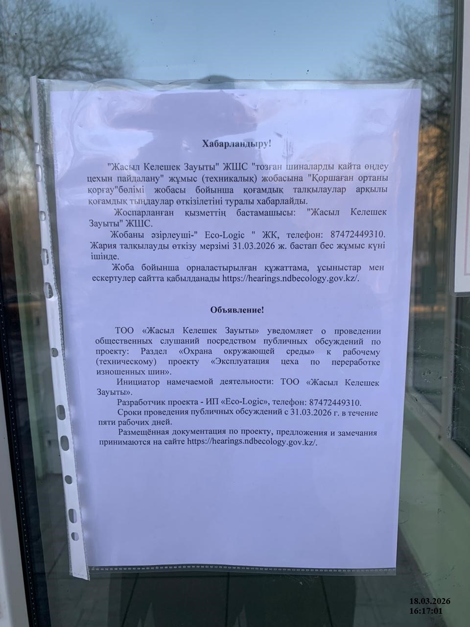 1. Инициатор: Товарищество с ограниченной ответственностью ""Жасыл Келешек Зауыты""