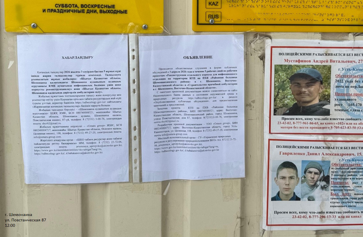 По проекту: Строительство врачебной амбулатории в г. Шемонаихе, Восточно-Казахстанской области