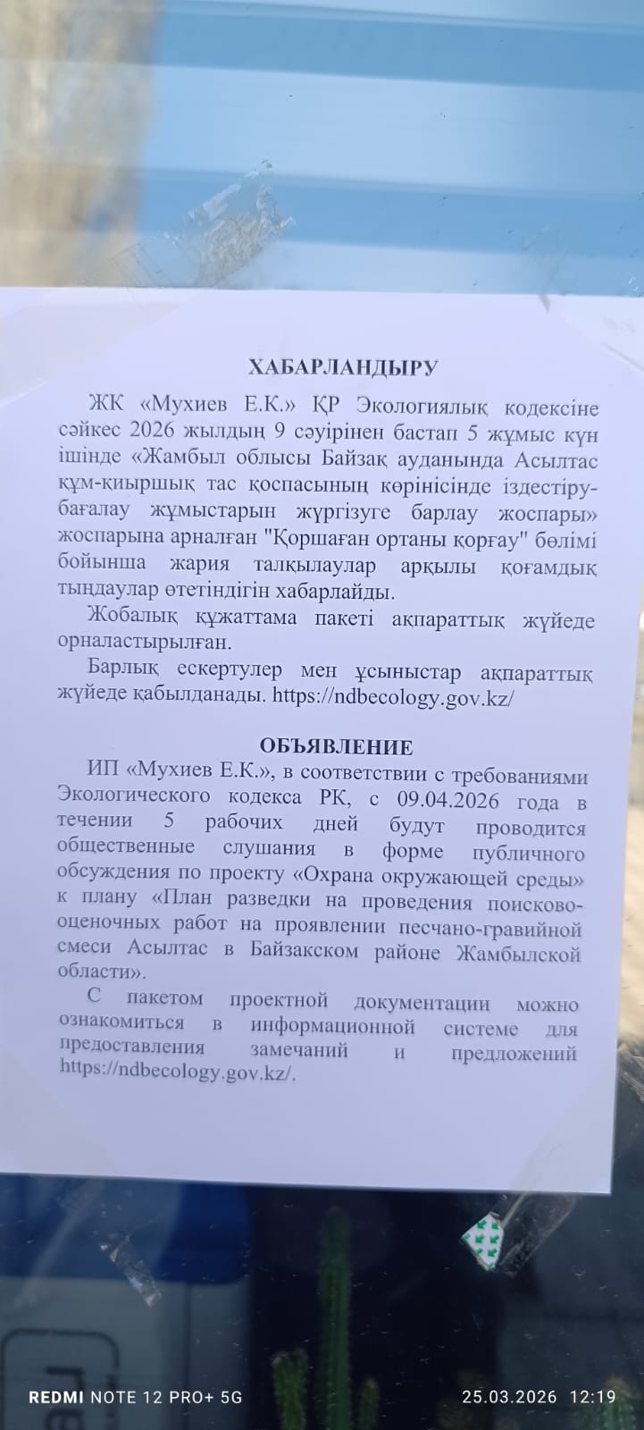 1.3. Контакты:muhiev.e@mail.ru; ndbecology.gov.kz;