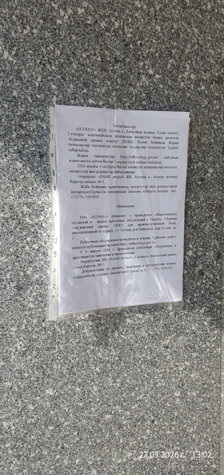 1.3. Контакты:ruslan@ecomaf.kz; ;