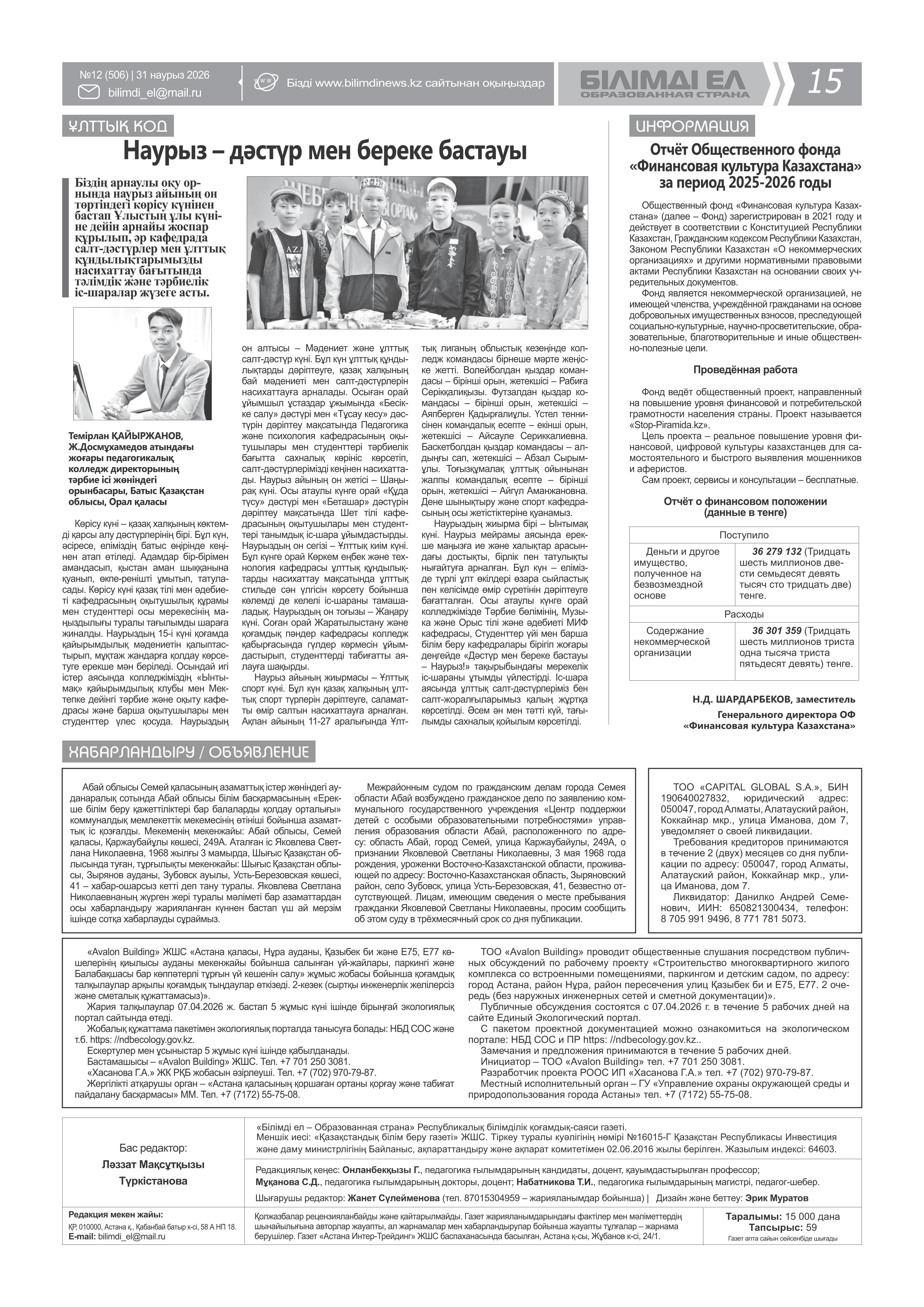 1. Инициатор: Товарищество с ограниченной ответственностью ""Avalon Building""
