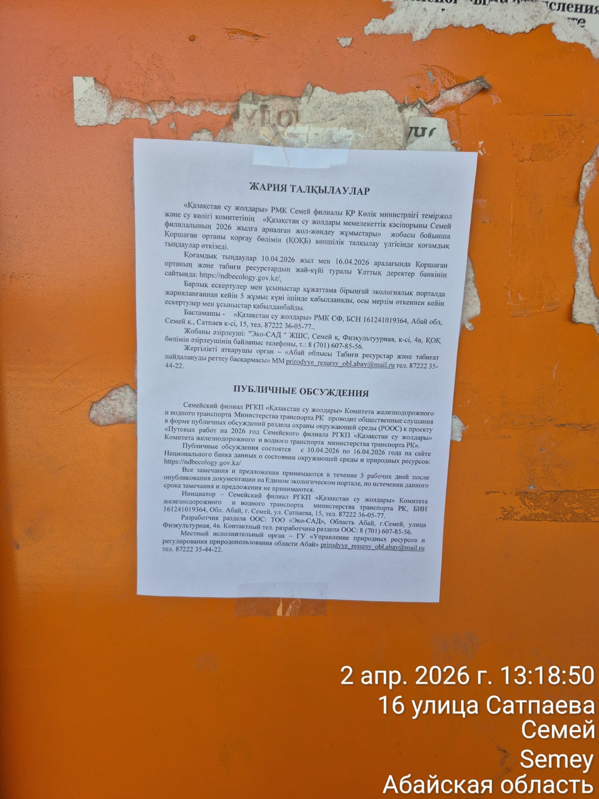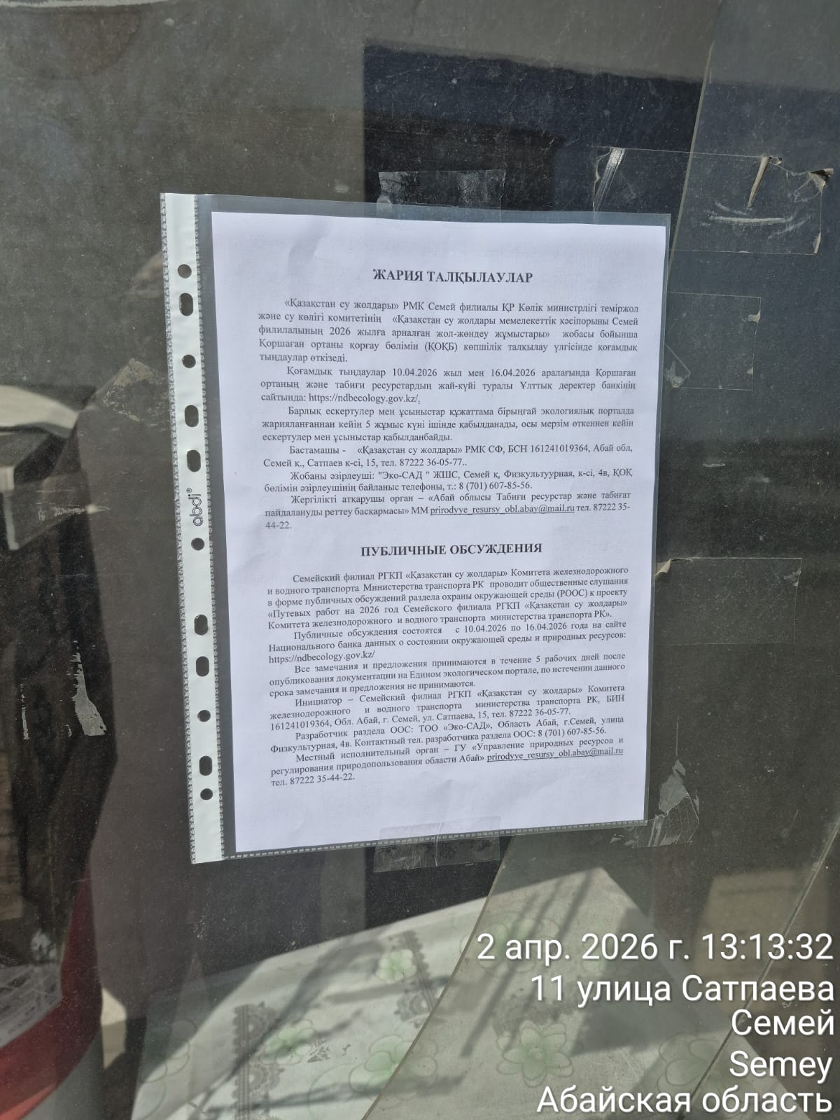 По проекту: Проект путевых работ на 2026 год Семейского филиала РГКП «Қазақстан су жолдары» Комитета железнодорожного и водного транспорта Министерства транспорта РК