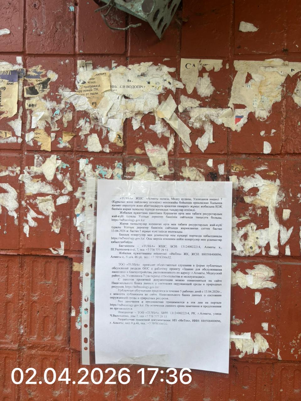 По проекту: Раздел «Охрана окружающей среды» разработан к рабочему проекту «Здание для обслуживания населения и благоустройства, расположенного по адресу: г.Алматы, Медеуский район, ул. Уалиханова 7 (на период строительства и эксплуатации)».