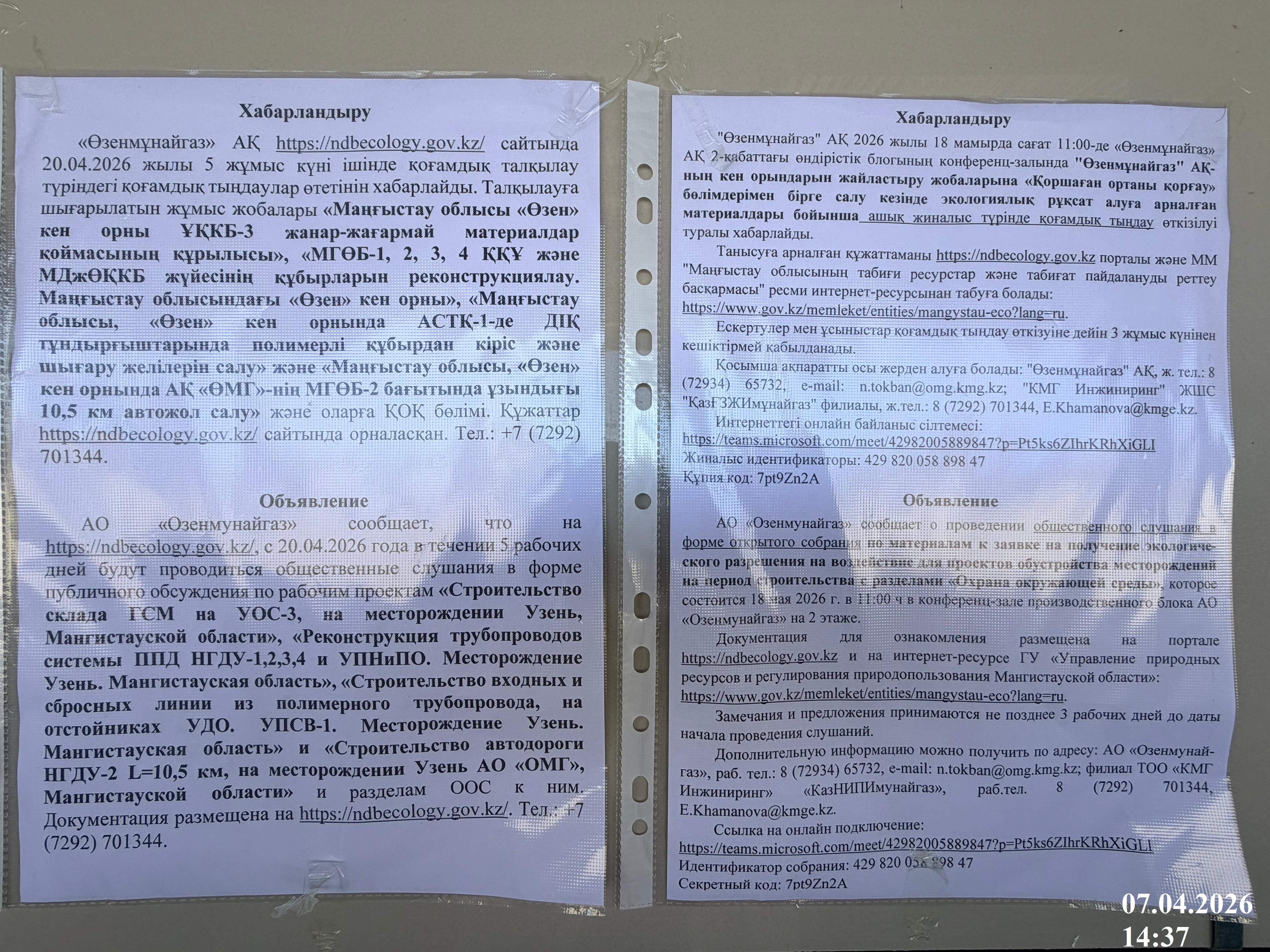 1.3. Контакты:a.kozhanova@omg.kmg.kz; https://www.ozen.kz/rus/;