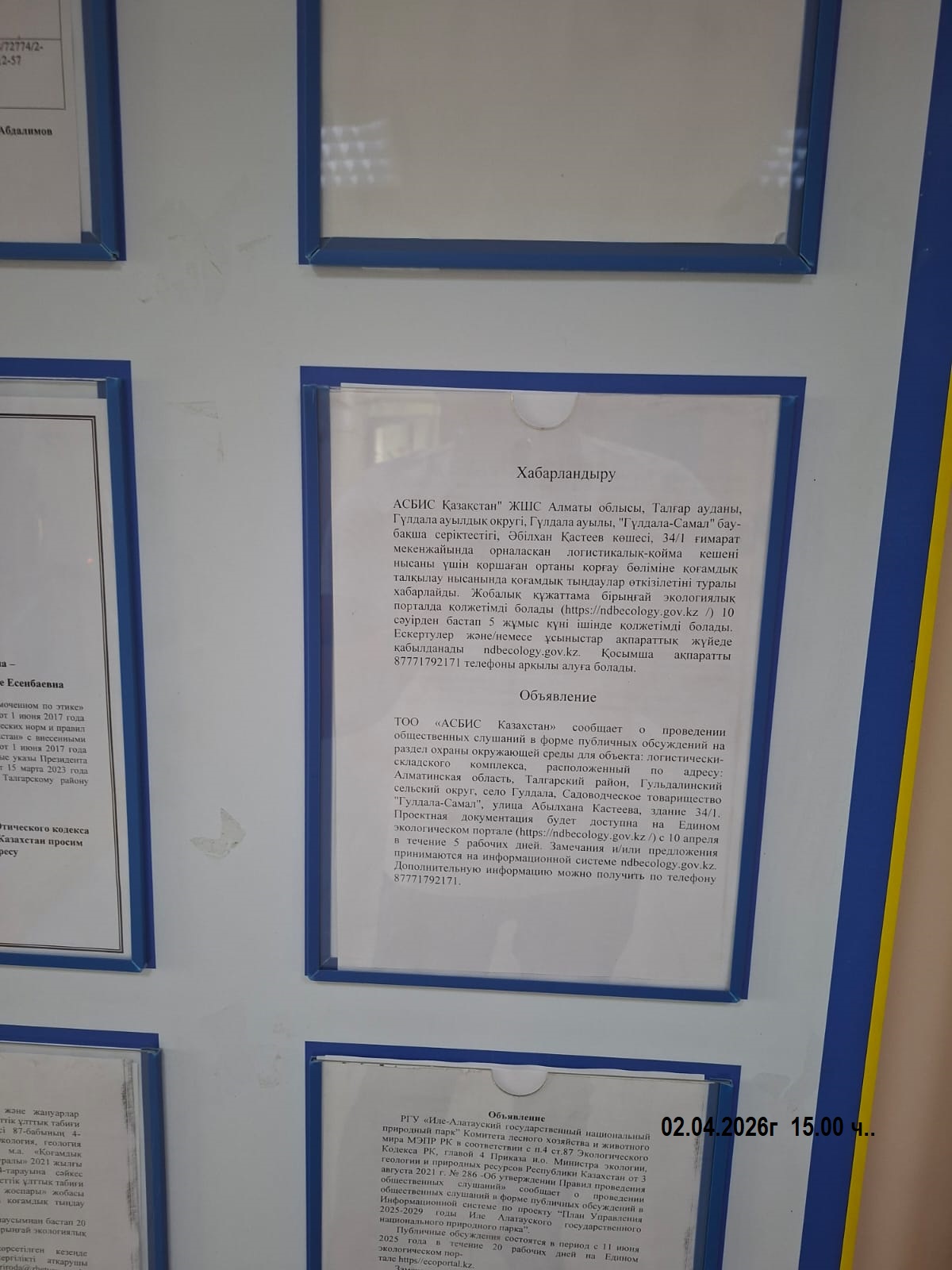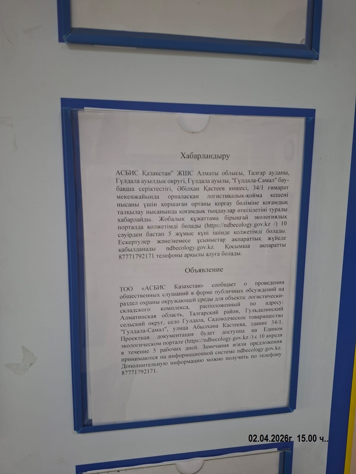 1.3. Контакты:nazgul.zhailganova@asbis.kz; hearings.ndbecology.gov.kz;