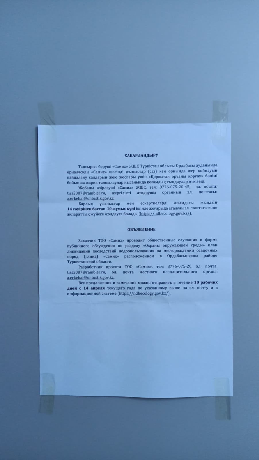 По проекту: РАЗДЕЛ «ОХРАНЫ ОКРУЖАЮЩЕЙ СРЕДЫ» для план ликвидации последствий недропользования на месторождении осадочных пород (глина) «Самих» расположенном в Ордабасынском районе Туркестанской области