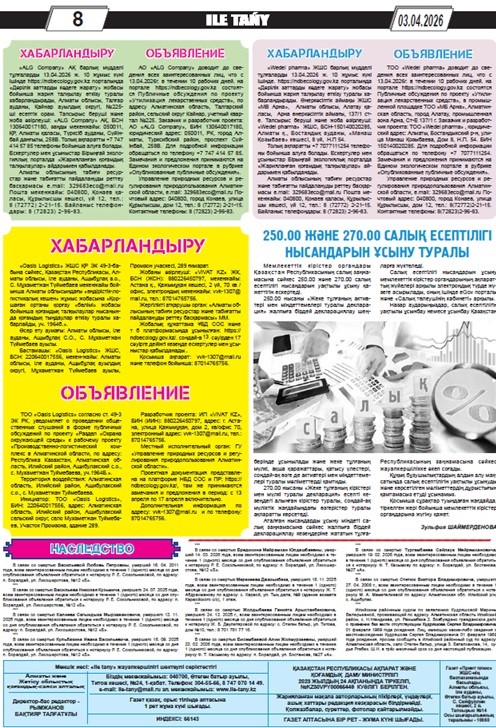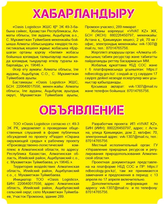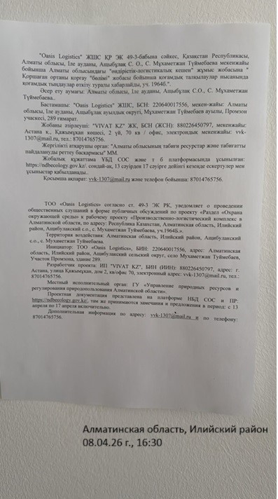 1.3. Контакты:ye.bikbulatova@oasis-logistics.kz; ;