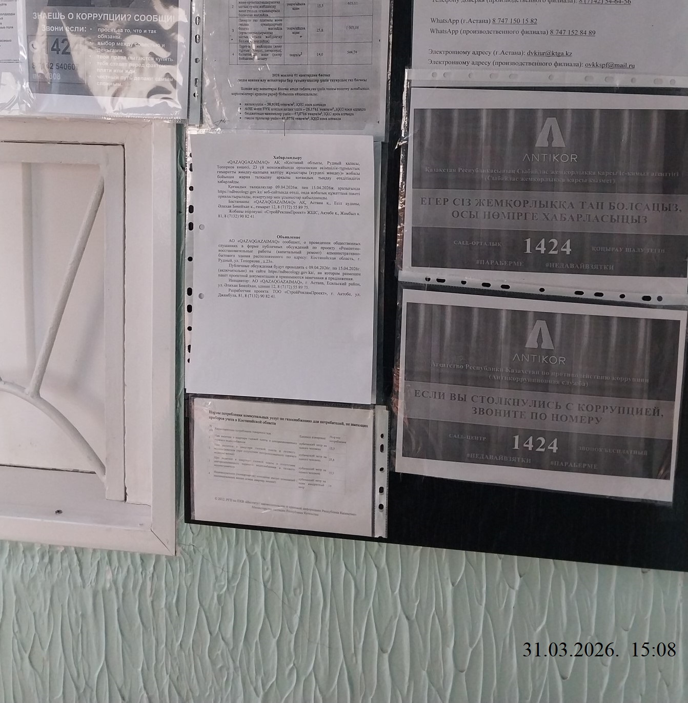 1. Инициатор: Костанайский производственный филиал АО ""QAZAQGAZ AIMAQ""