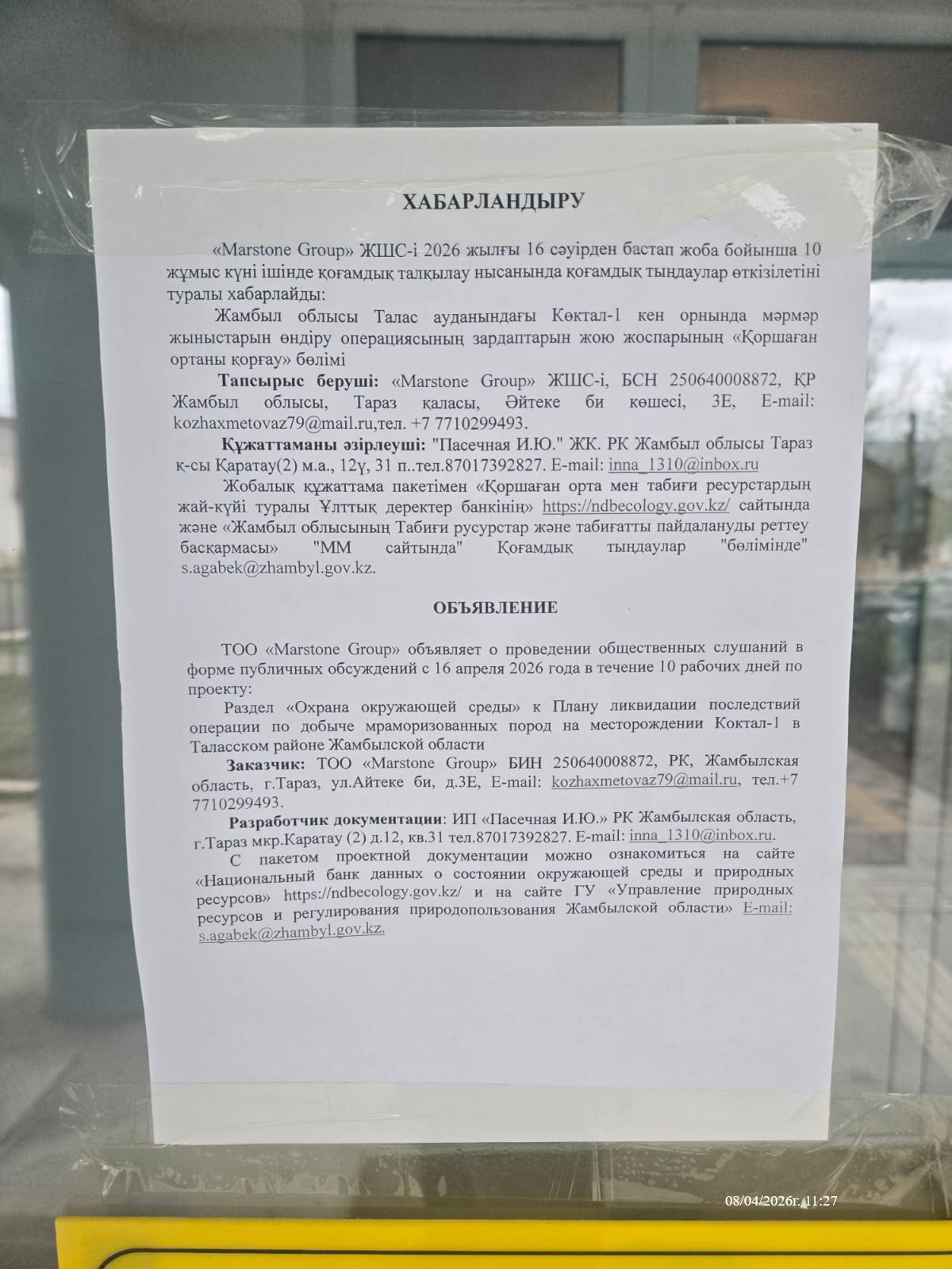 1.3. Контакты:eszhanov@asiachem.kz; ;