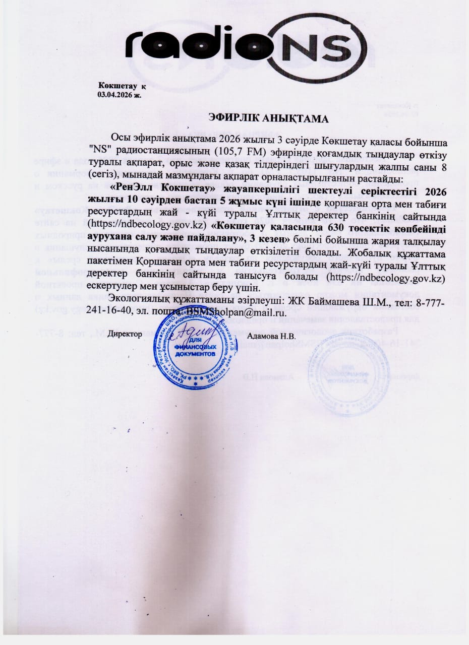 1. Инициатор: Товарищество с ограниченной ответственностью ""РенЭлл Кокшетау""
