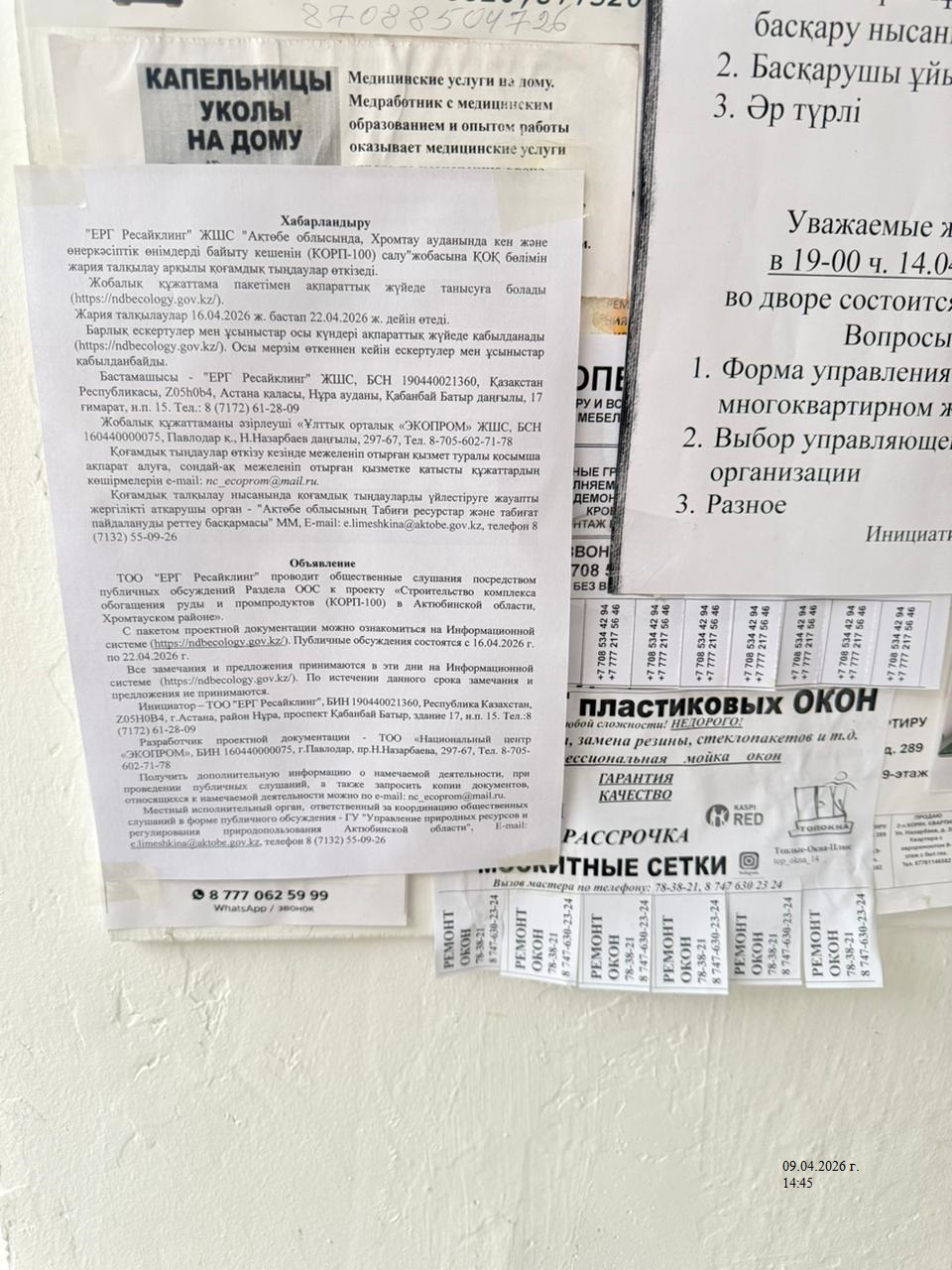| 1 | Актюбинская область, Хромтауский район, г.Хромтау |