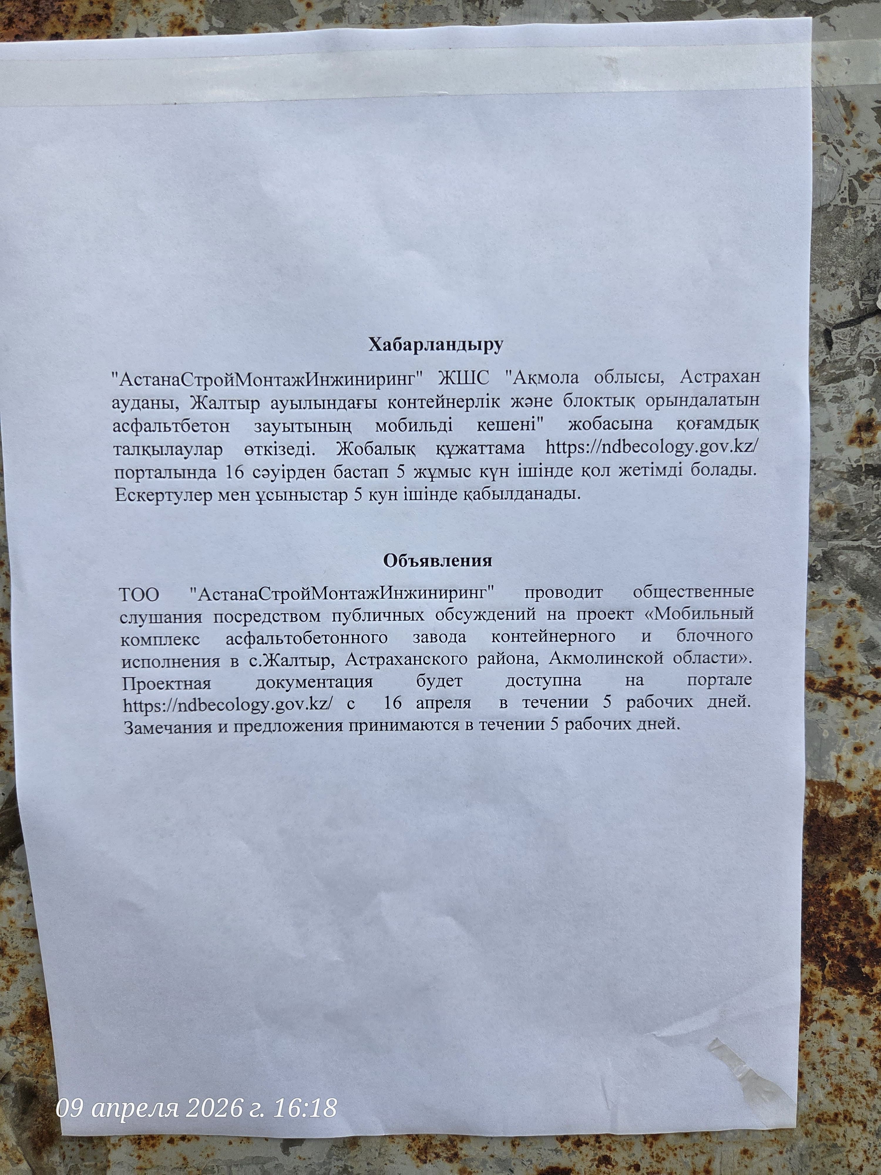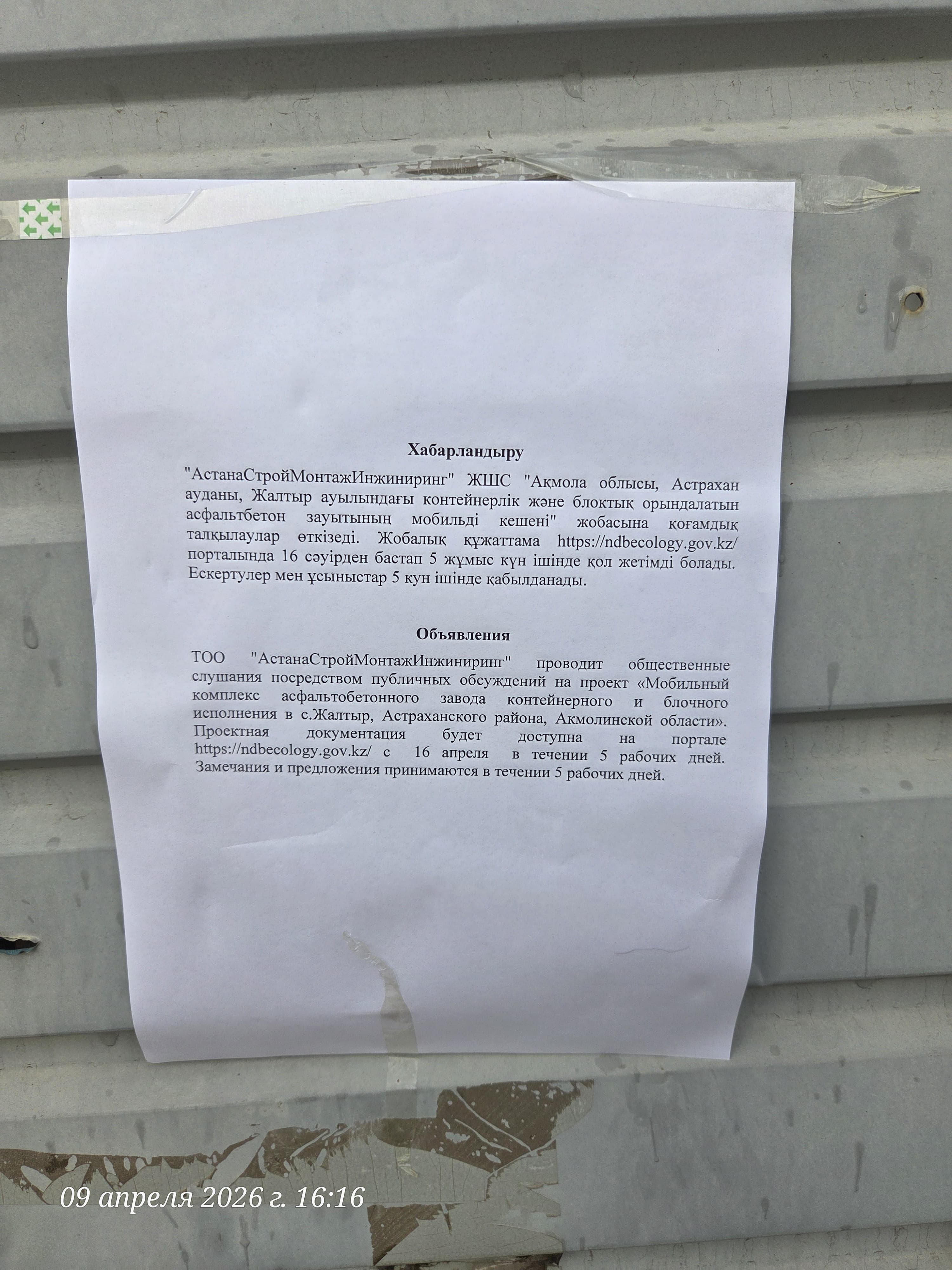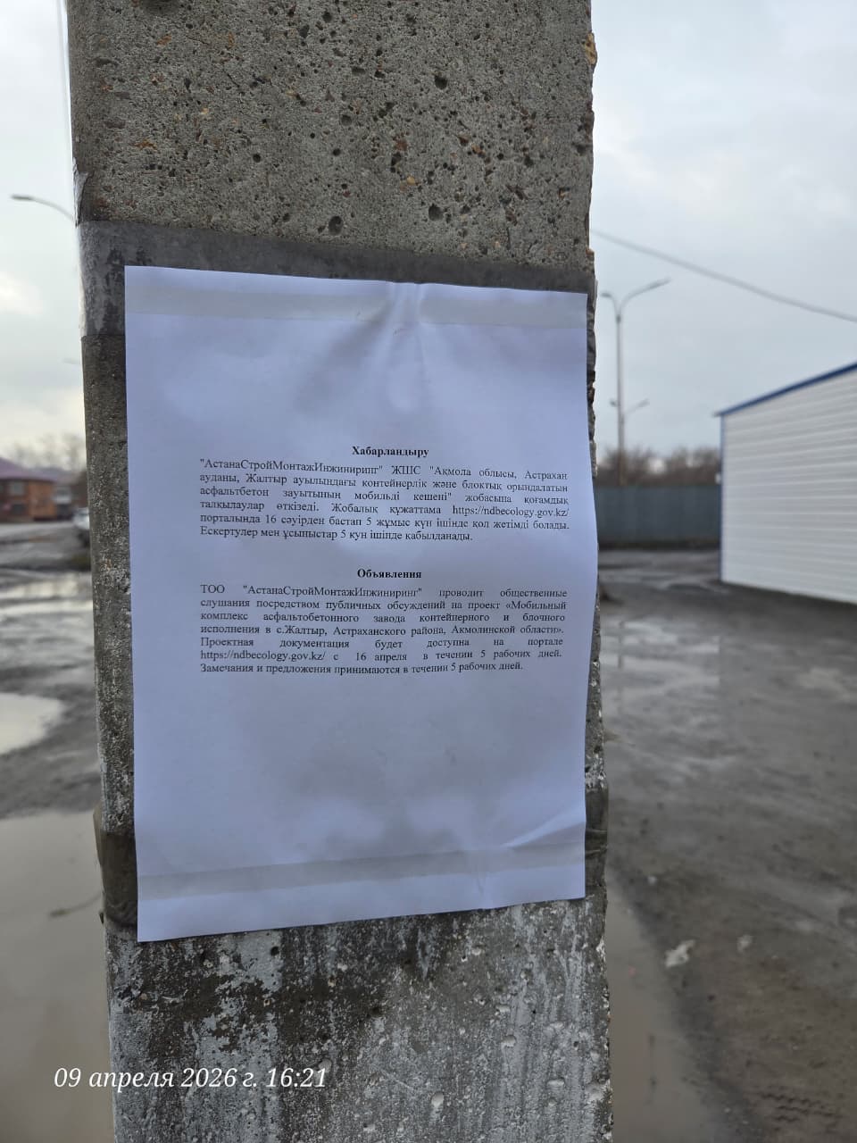 По проекту: ПРОЕКТ Мобильный комплекс асфальтобетонного завода контейнерного и блочного исполнения в с. Жалтыр, Астраханского района, Акмолинской области Раздел «Охрана окружающей среды»