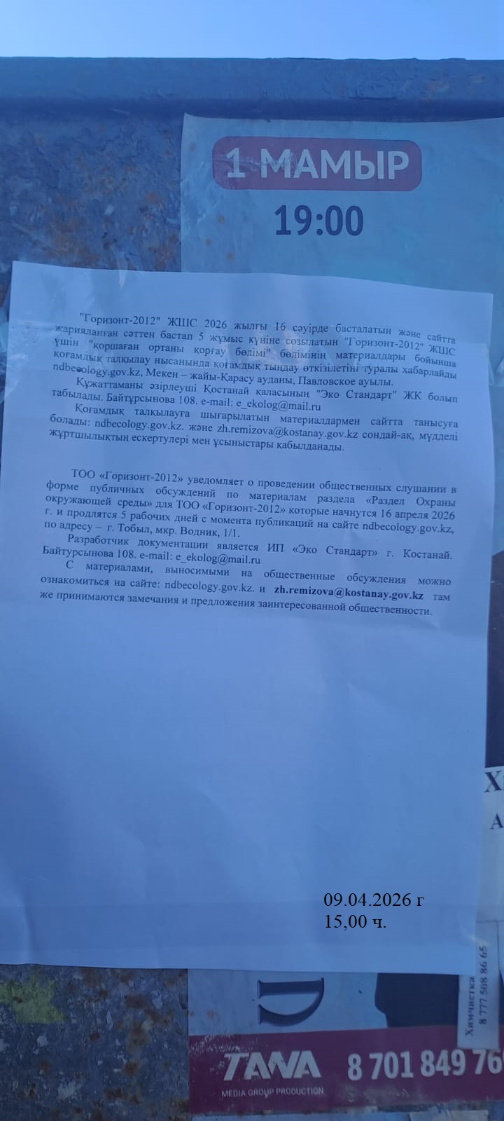 1. Инициатор: Товарищество с ограниченной ответственностью ""Горизонт-2012""