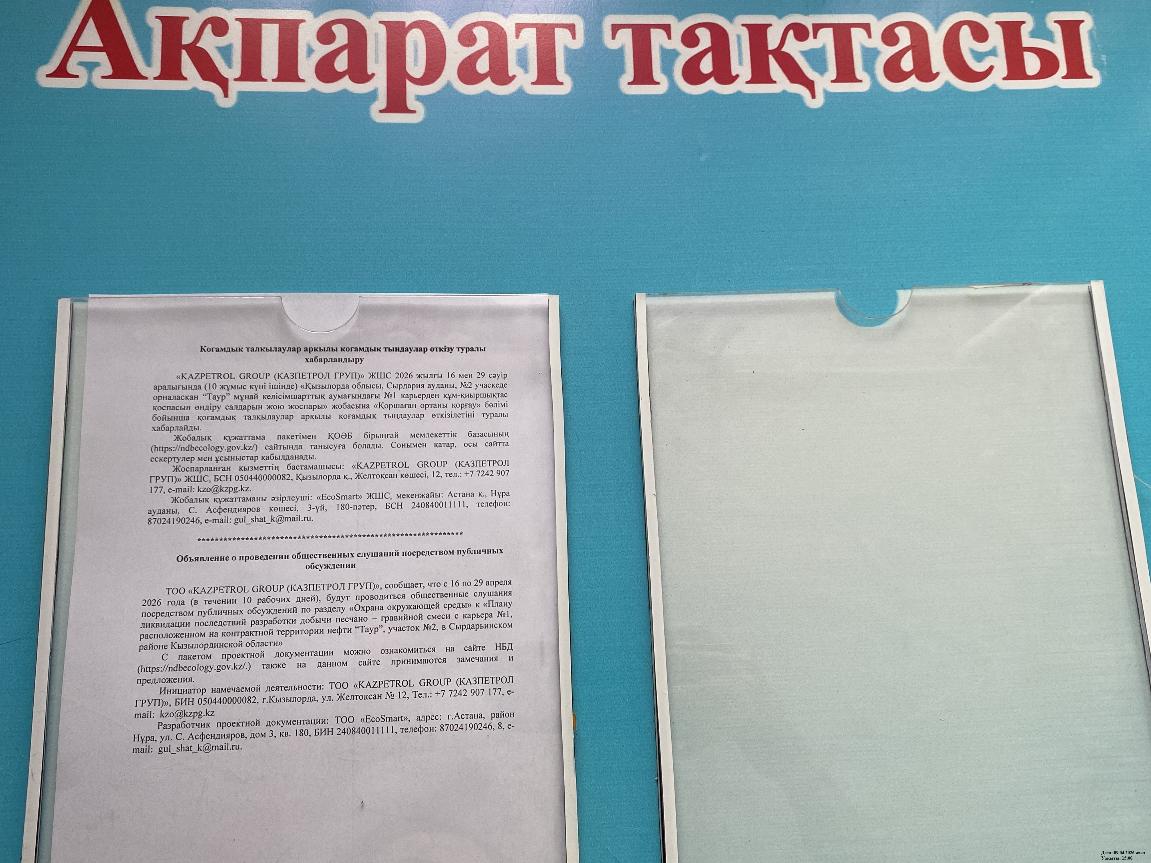 1.3. Контакты:a.bilalova@kzpg.kz; ;