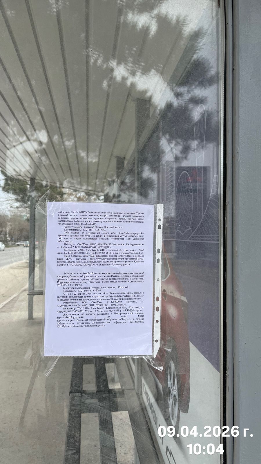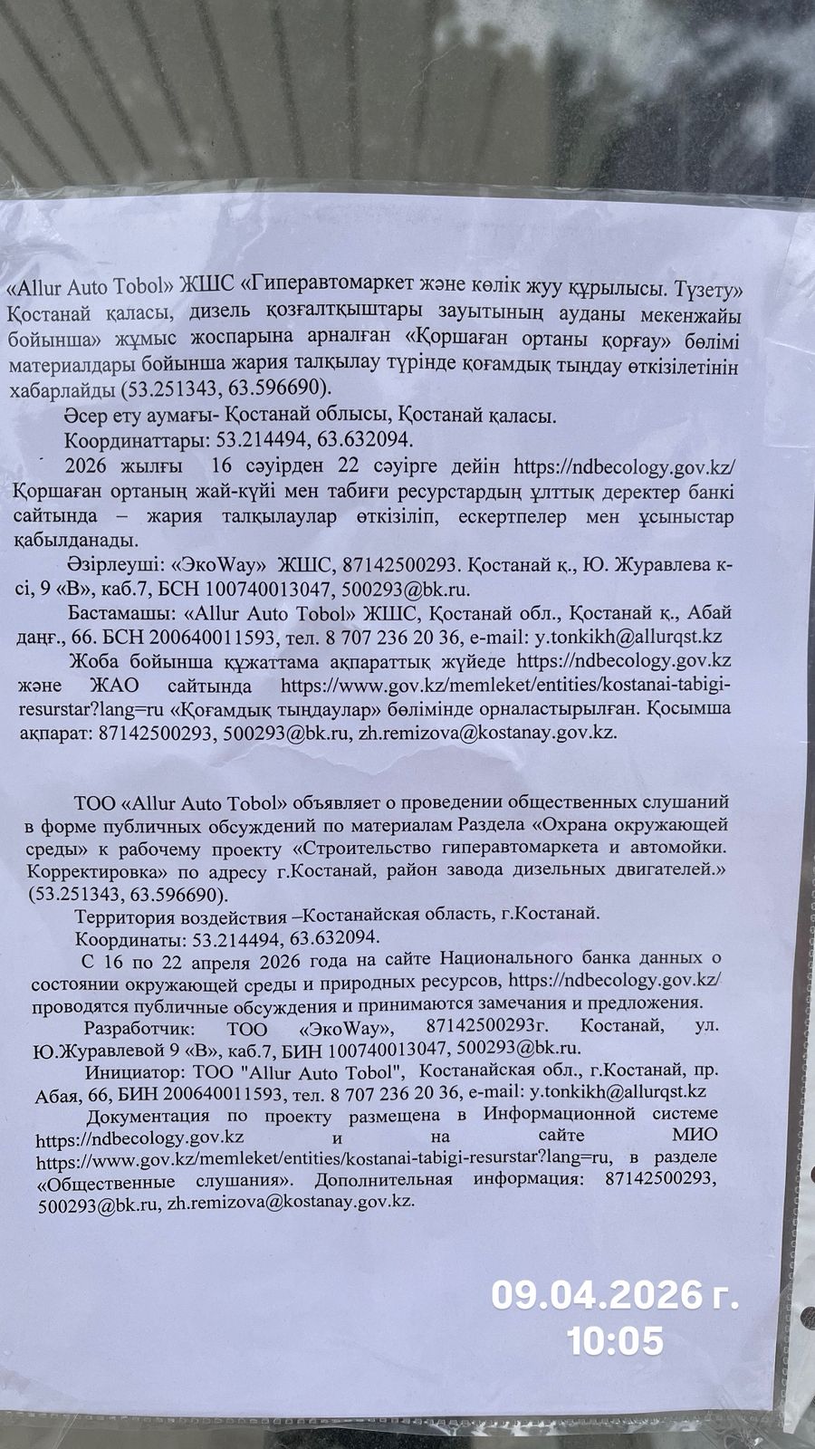 По проекту: Раздел «Охрана окружающей среды» к рабочему проекту «Строительство гиперавтомаркета и автомойки. Корректировка» по адресу г.Костанай, район завода дизельных двигателей»