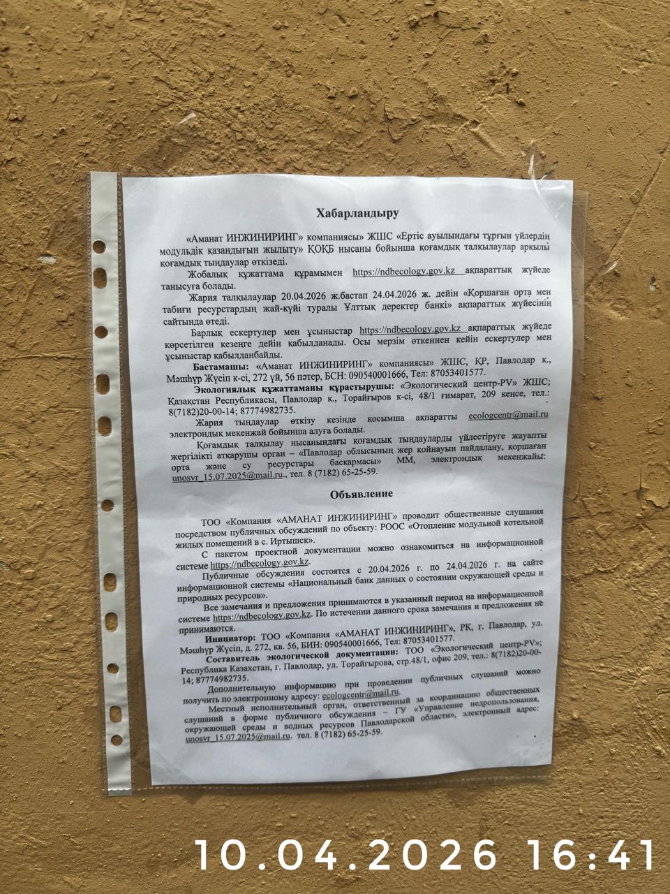 2. Период проведения общественных слушаний: 20.04.2026 - 24.04.2026